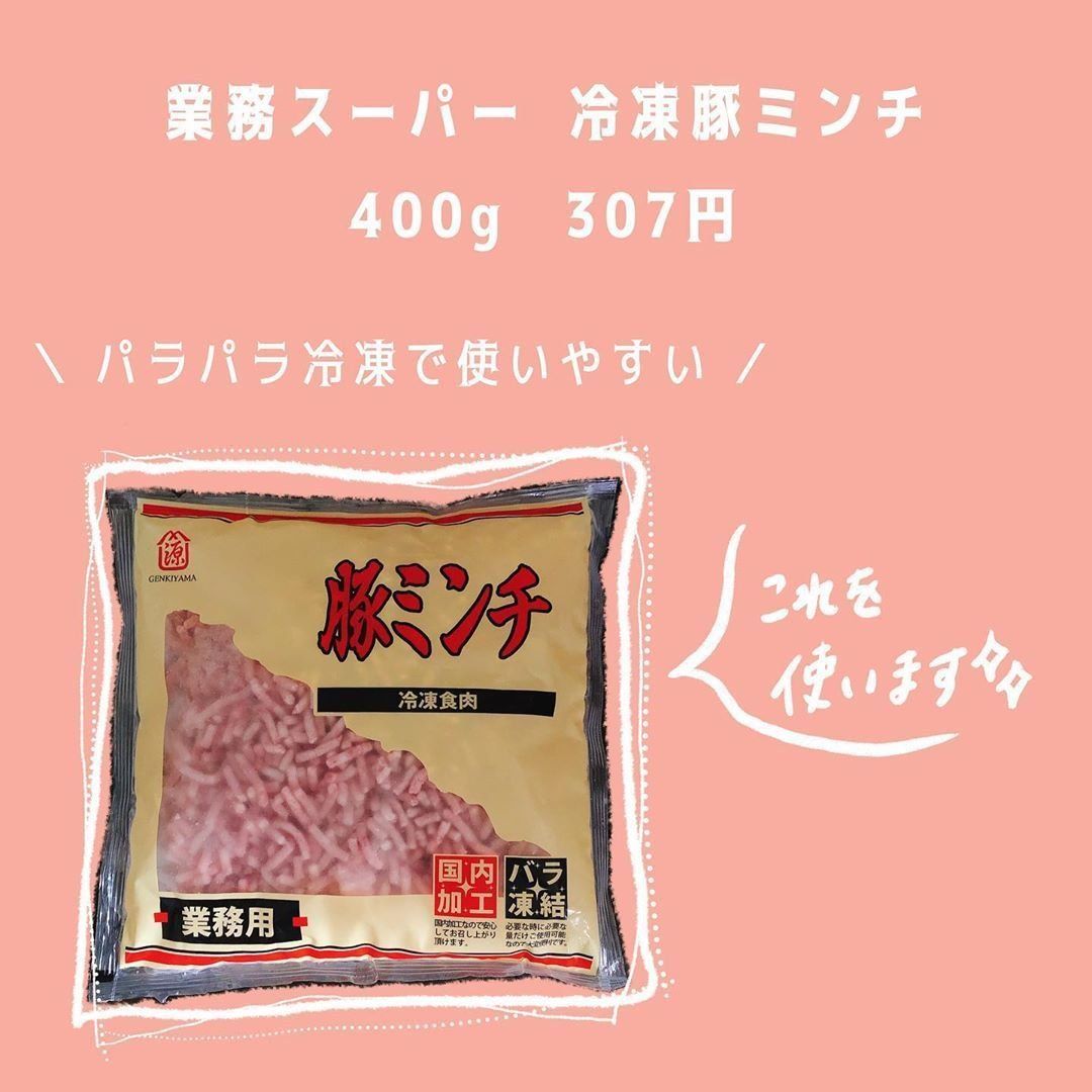 こちらはパラパラで使いやすい業務スーパーの冷凍豚ミンチです。400g入って307円とかなりのお手頃価格です。mayu.kakei_28さんは、この豚ミンチを使って麻婆茄子をつくったそうです。ほしい分量だけ使って、残りは冷凍保存可能なところがうれしいですね!