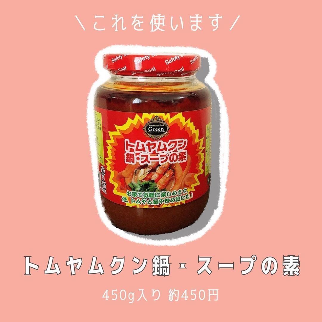 mayu.kakei_28さんがエスニック好きなかたにオススメする商品が、こちらのトムヤムクン鍋・スープの素です。450gの大容量で約450円とお財布にやさしい価格で、エスニック気分が味わえる一品。パスタなどへのアレンジも自在で使い勝手抜群な商品です。