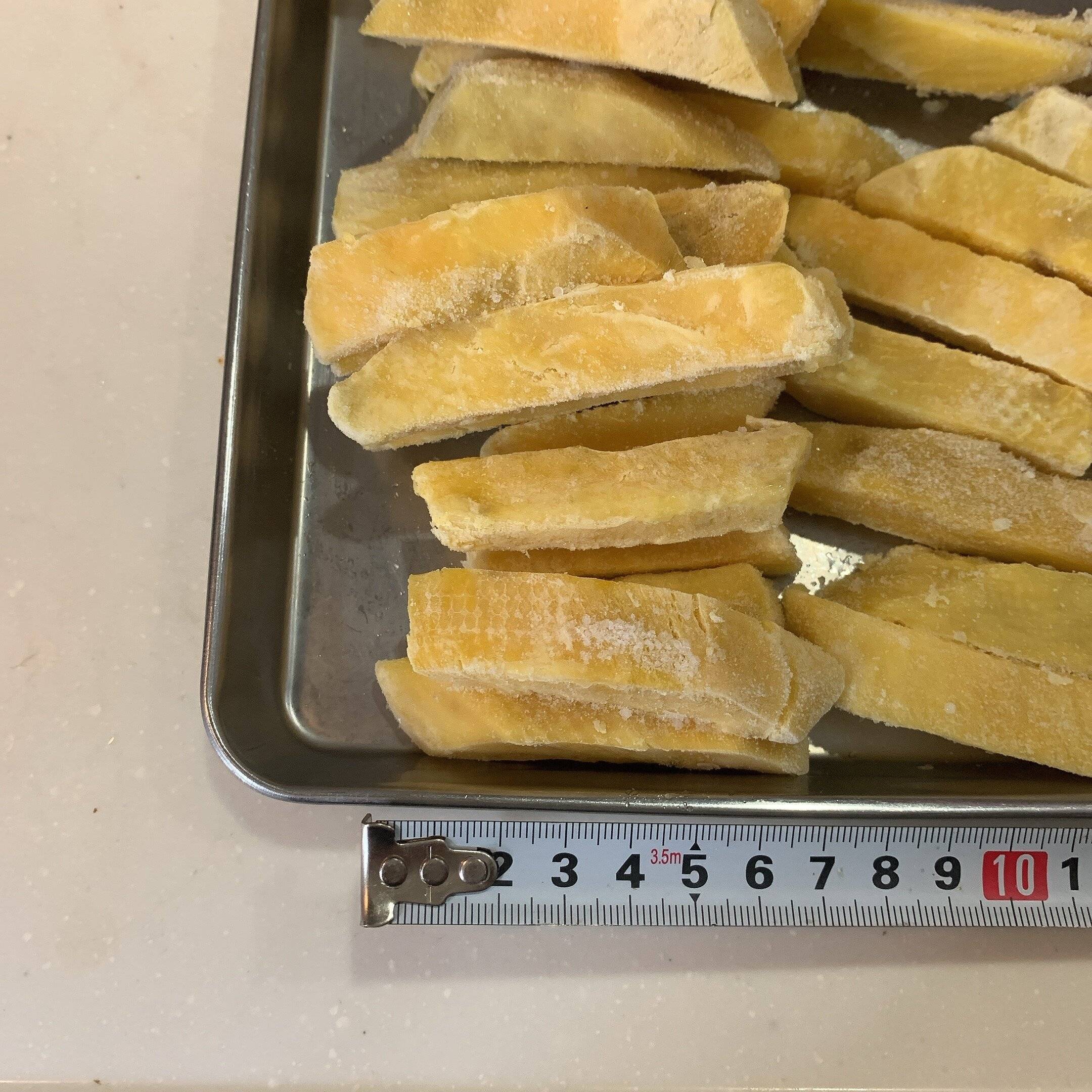 皮なしスティックカットしてある冷凍さつまいもです。