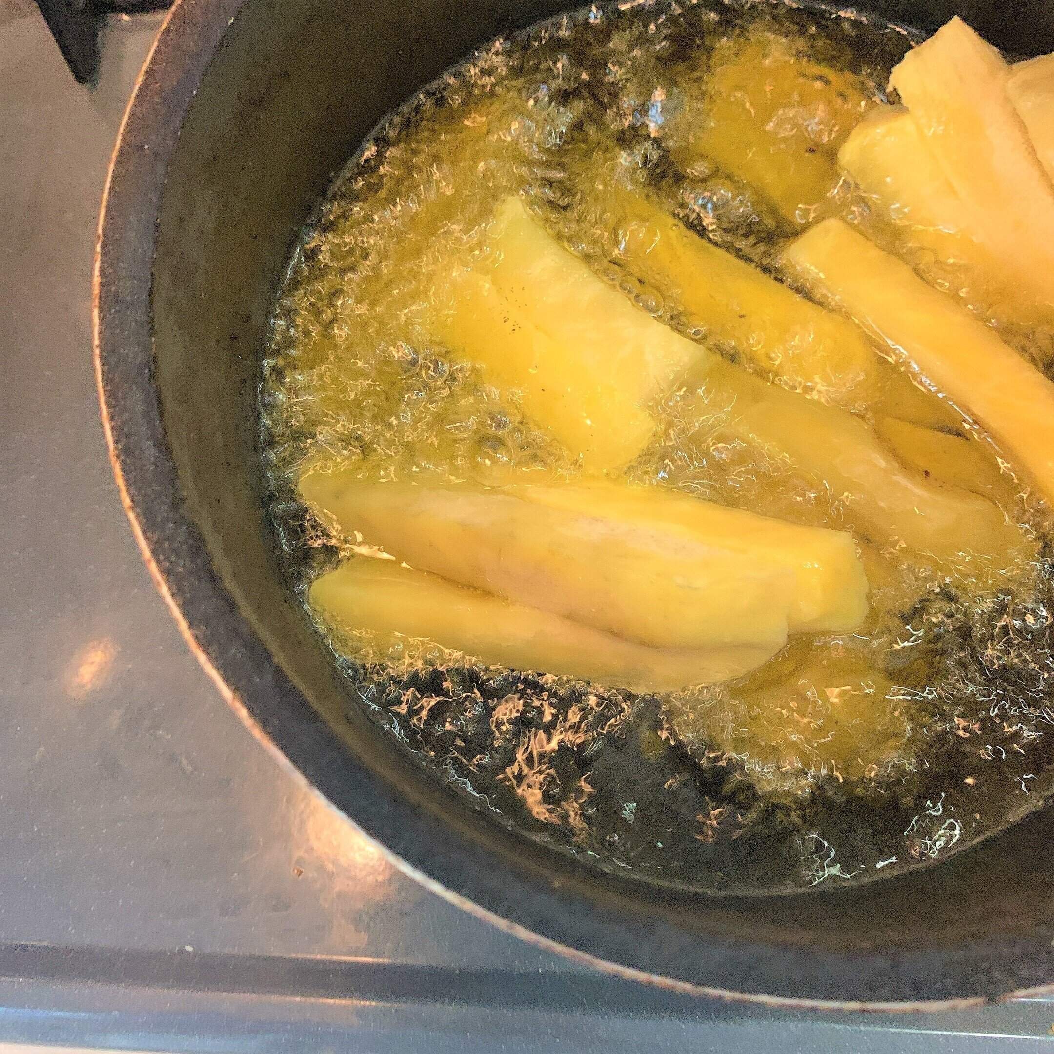 冷凍のまま、油で約7分揚げます。