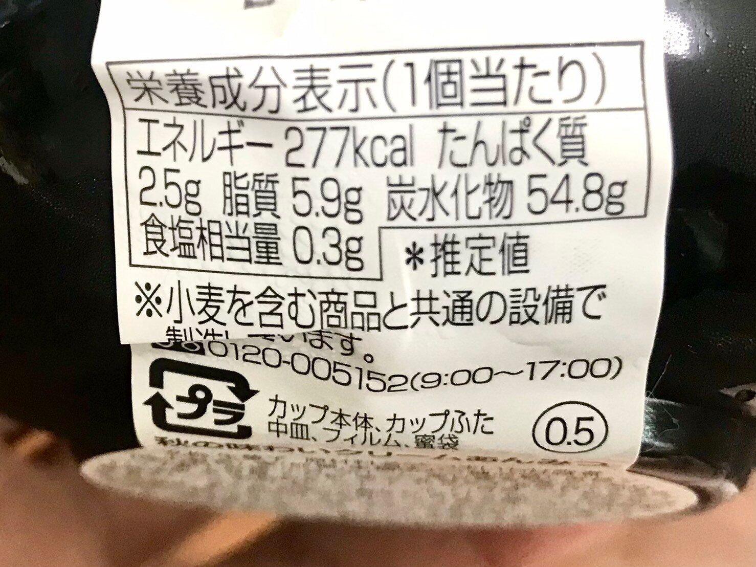 栄養成分表示を確認すると、1個当たり277kcalでした。