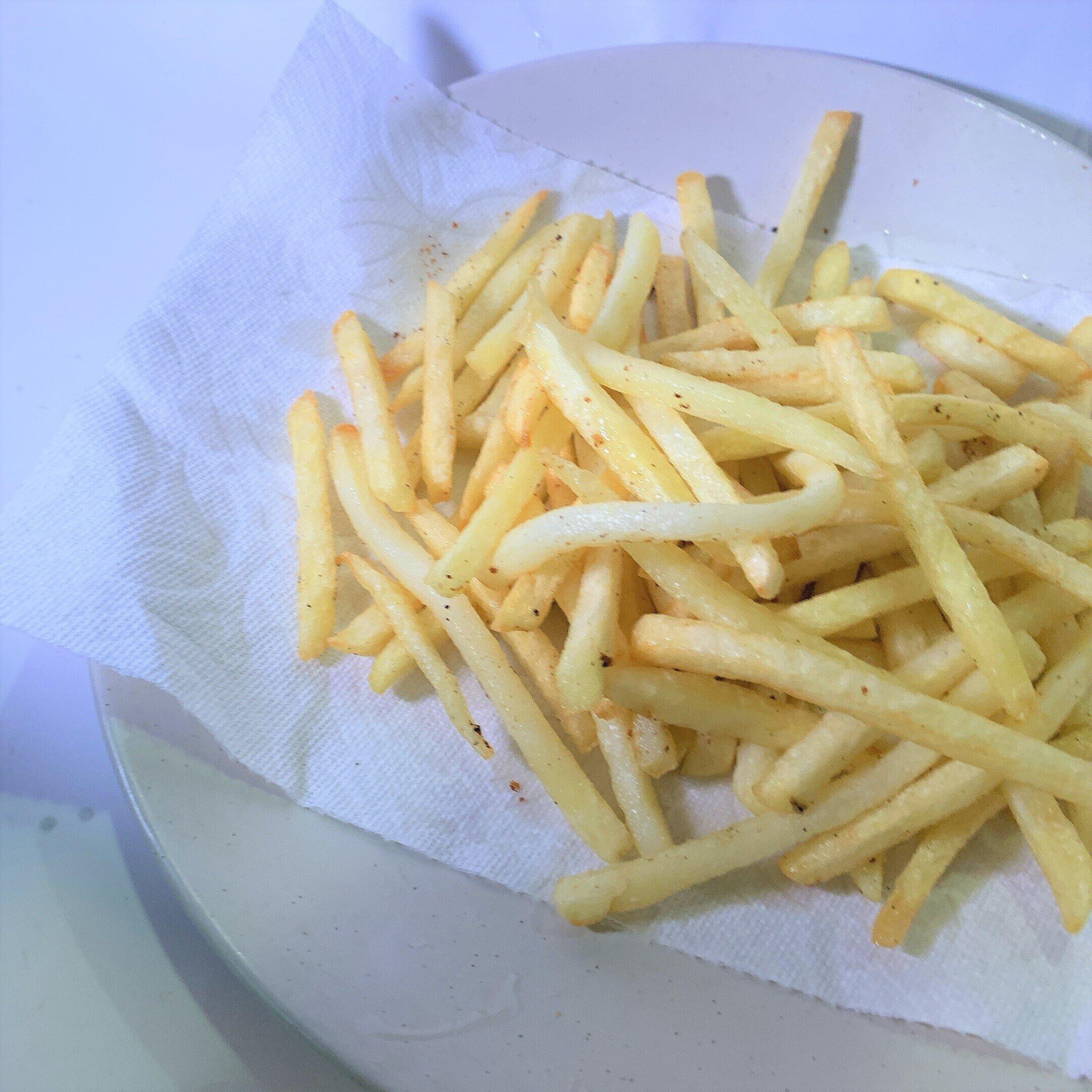 1本がそんなに太くないので、比較的短い時間で揚げる事ができます。さらに時短にしたい方は、一度冷凍フライドポテトをレンジで温めます。表面についた水分をしっかりふき取ってから揚げると、油跳ねも防げます。