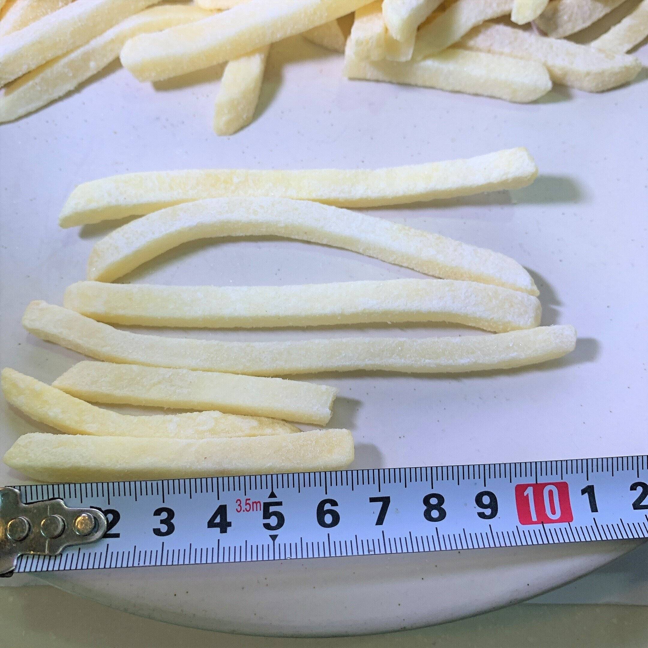 自宅にて油で揚げます。フライドポテトはやはり揚げたてが美味しいですよね。