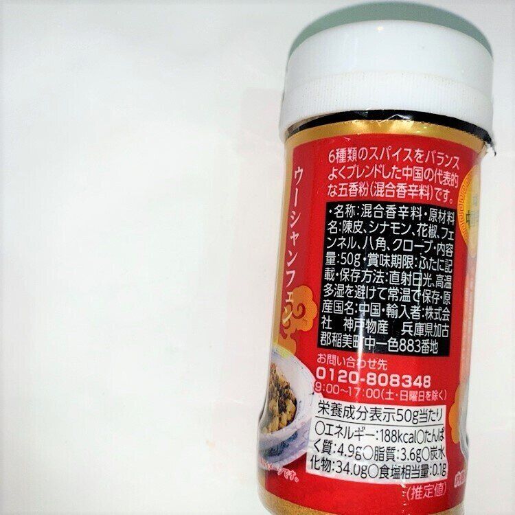 名前どおり5個のスパイスが入った調味料なんですが、業務スーパーの「五香粉」は6種類のスパイスが入っています。