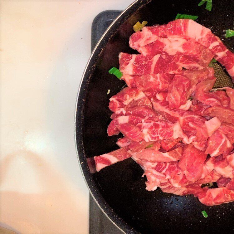 1.ニンニク・長ねぎを炒め、香りがしたら豚肉を塩コショウして炒める