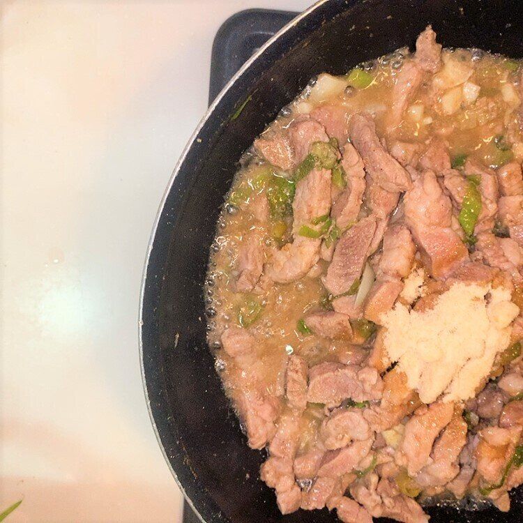 2.豚肉に火が通ったら、調味料を入れます。五香粉が苦手じゃなかったら小さじ2ほど入れ、沸騰させる