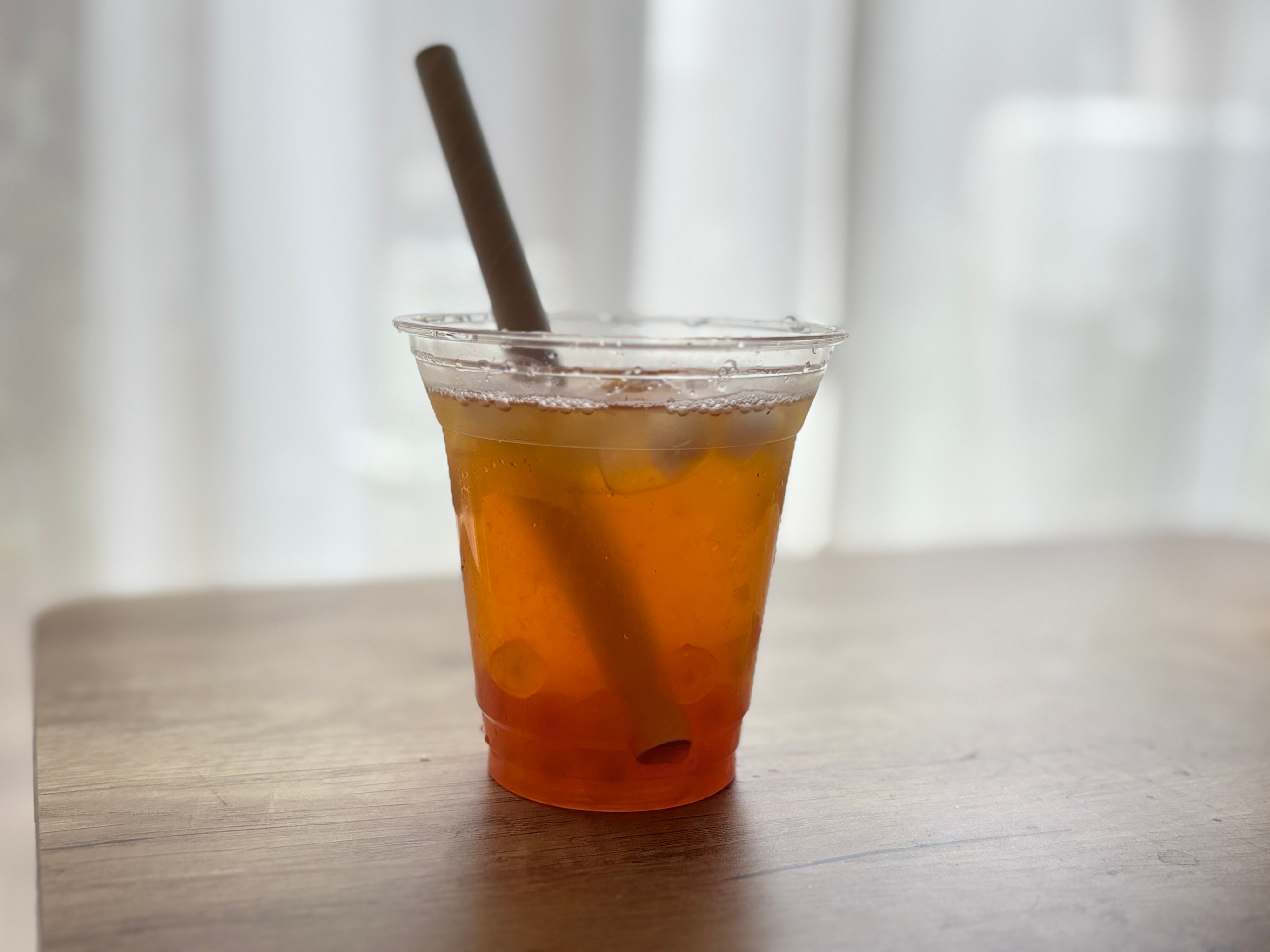 パッションフルーツティーだけタピオカがカラフルで、見た目もかわいいのが特徴です。