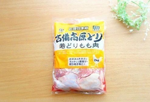 業務スーパーの鶏肉のなかでも安くておいしいと評判なのが、こちらの吉備高原どりもも肉。2kg入りで1,560円。100gあたり78円なので、国産のもも肉としてはとてもお買い得ですね。内容量も2kgと大容量。唐揚げやタンドリーチキンなど、さまざまな料理に使うことができます。1袋にもも肉が7~8枚入っていますので、少しずつ解凍しながら使うのがよいですね。