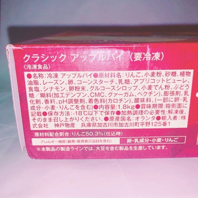 1.8キロの、冷凍のアップルパイです。