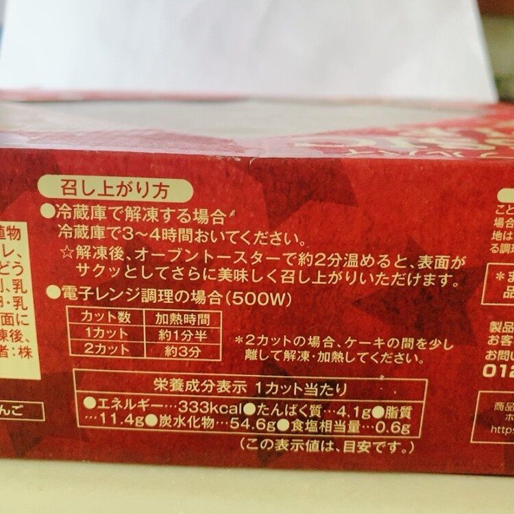 アップルパイはそのまま箱に入っていますので、少しずつ食べたい方には食品ラップに包んだ小分け冷凍保存をオススメします。