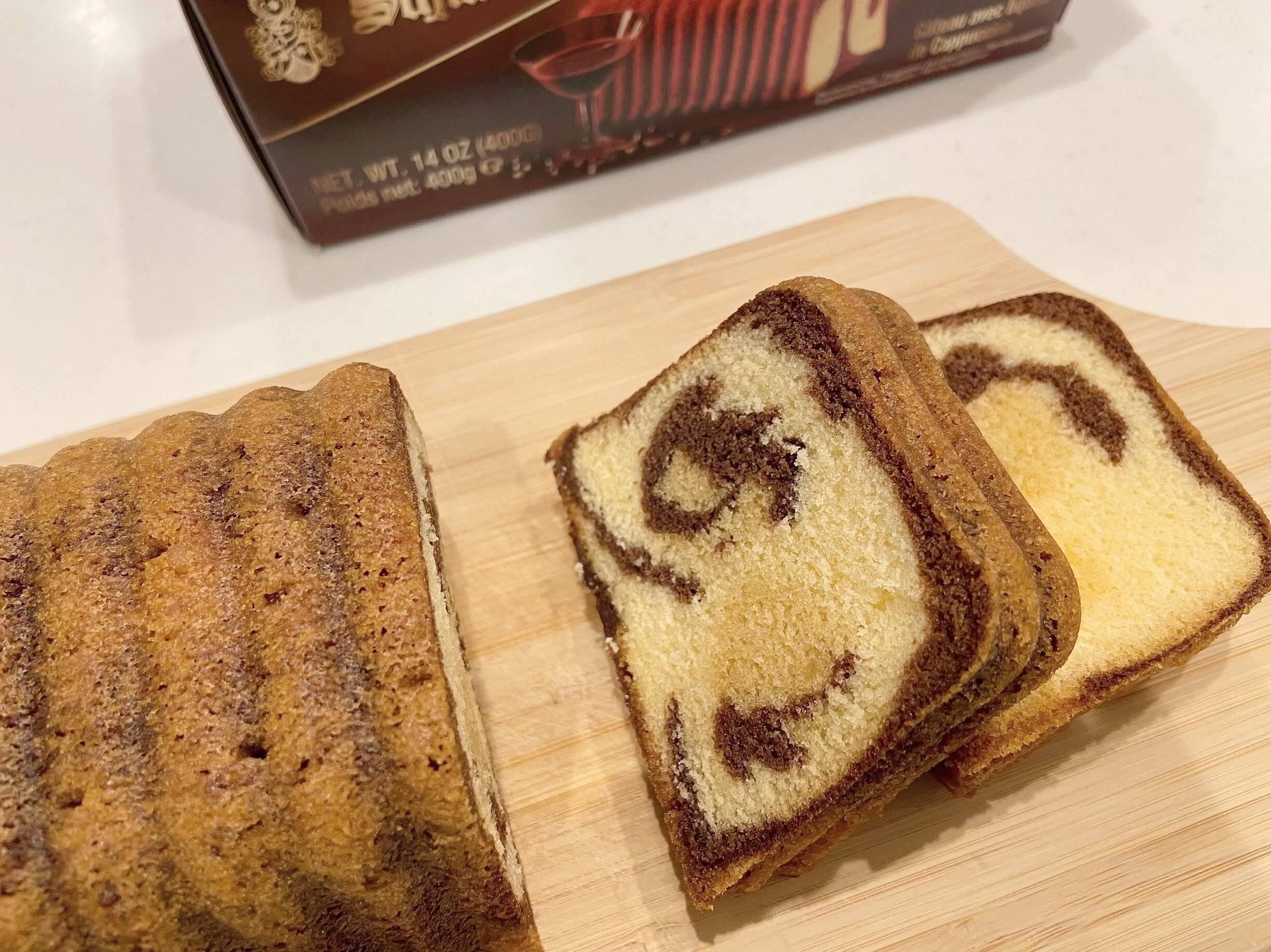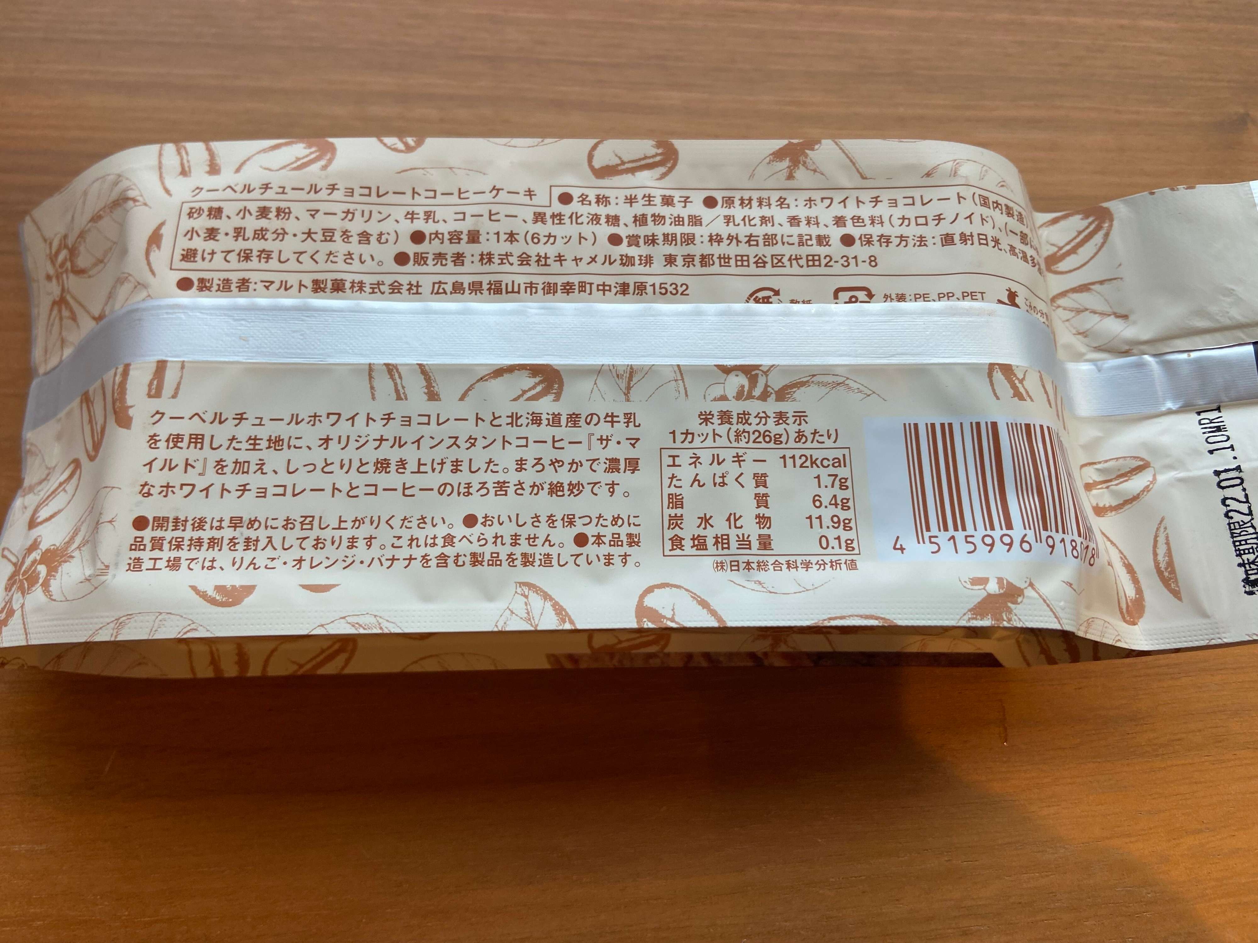 ホワイトチョコレートと北海道産の牛乳、カルディオリジナルのコーヒー「ザ・マイルド」を加えて焼き上げたケーキ。