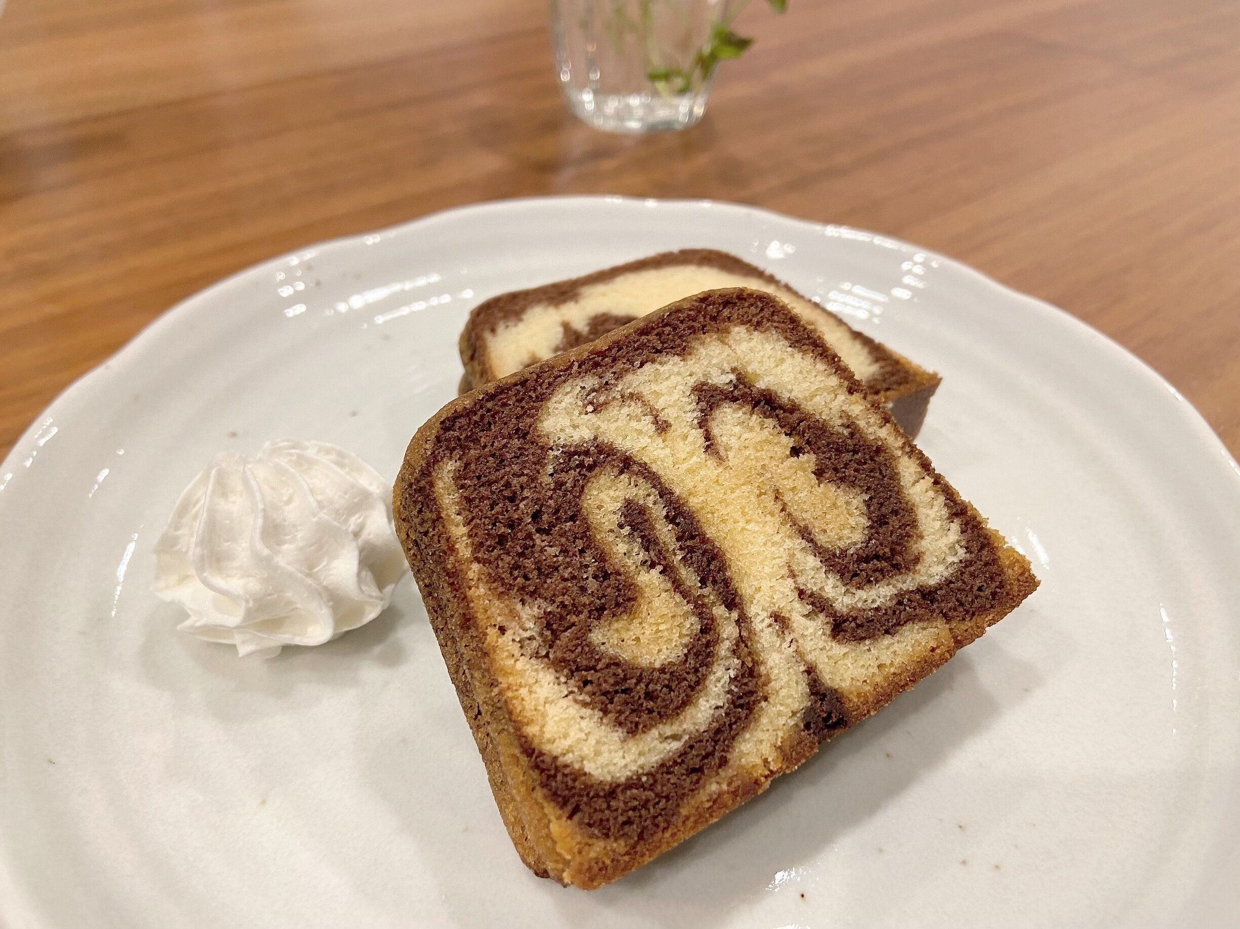 ケーキをカットしてみると断面がすごくおしゃれ。
