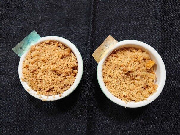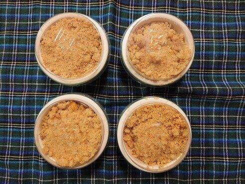 見た目はオーブンもレンジも変わりませんが、オーブン加熱の方がそぼろ生地がサクサクしています。