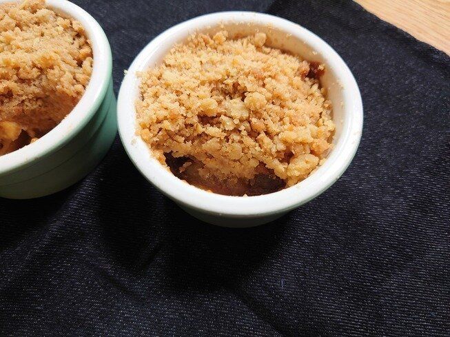「クランブル」とはイギリスを起源とする料理で、果物などにぽろぽろと崩れるぞぼろのような生地をトッピングして載せて焼いた料理。このポロポロは冷たいバター・小麦粉・砂糖で作るのですが、塩味の食事用クランブルも存在します。