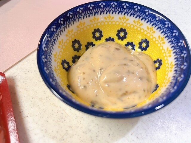 いつものマヨネーズより、少しだけゆるめのマヨネーズというよりソース感があります。