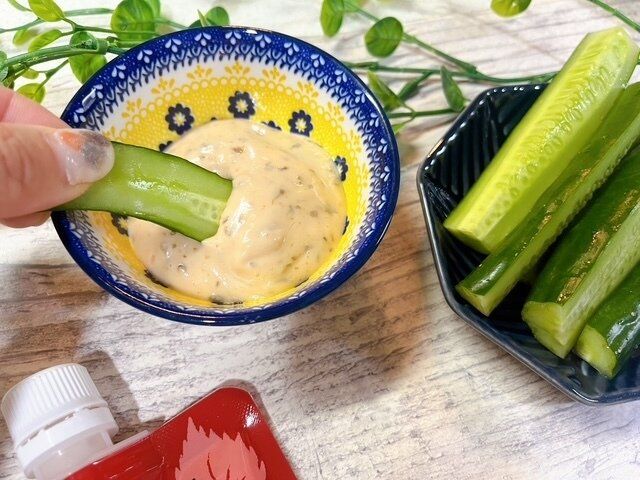 きゅうり以外にもにんじんやだいこんを細くカットして「梅しそマヨソース」をつけて食べたらとてもおいしかったです。