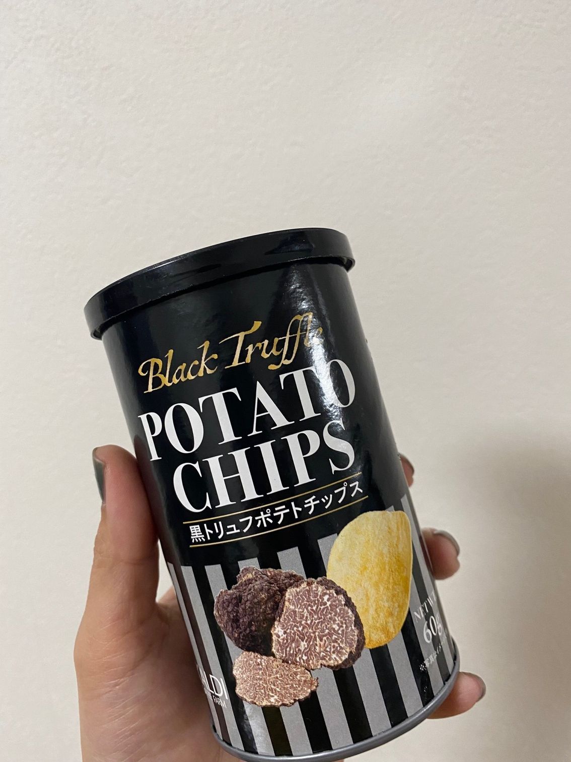《黒トリュフポテトチップス》60g178円。黒トリュフの芳醇な香りがするポテトチップスです。お酒との相性もいいのでおつまみにもおすすめです。