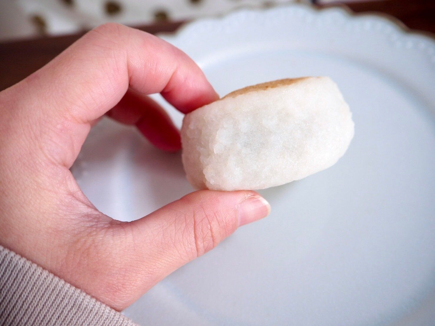 見た目はシンプルですが、SNS上では食感が最高、本当においしいなどと好評の粗搗き大福。食べ終わってからのあまりの満足感に、「発売されてすぐに食べればよかった!」と後悔したほどです。