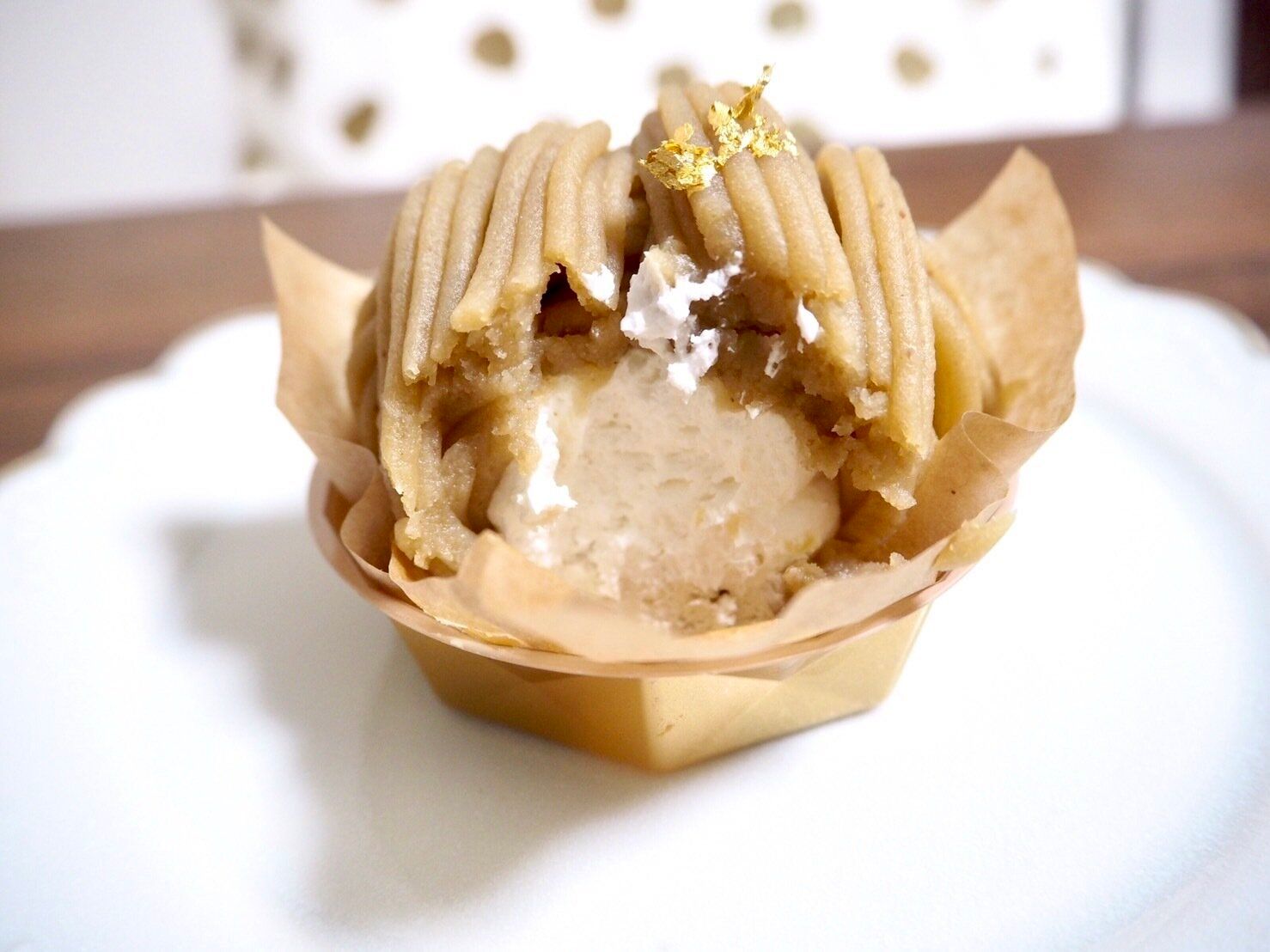 まさかの金箔がのっている「国産和栗のモンブラン」、値段は1つあたり594円です。