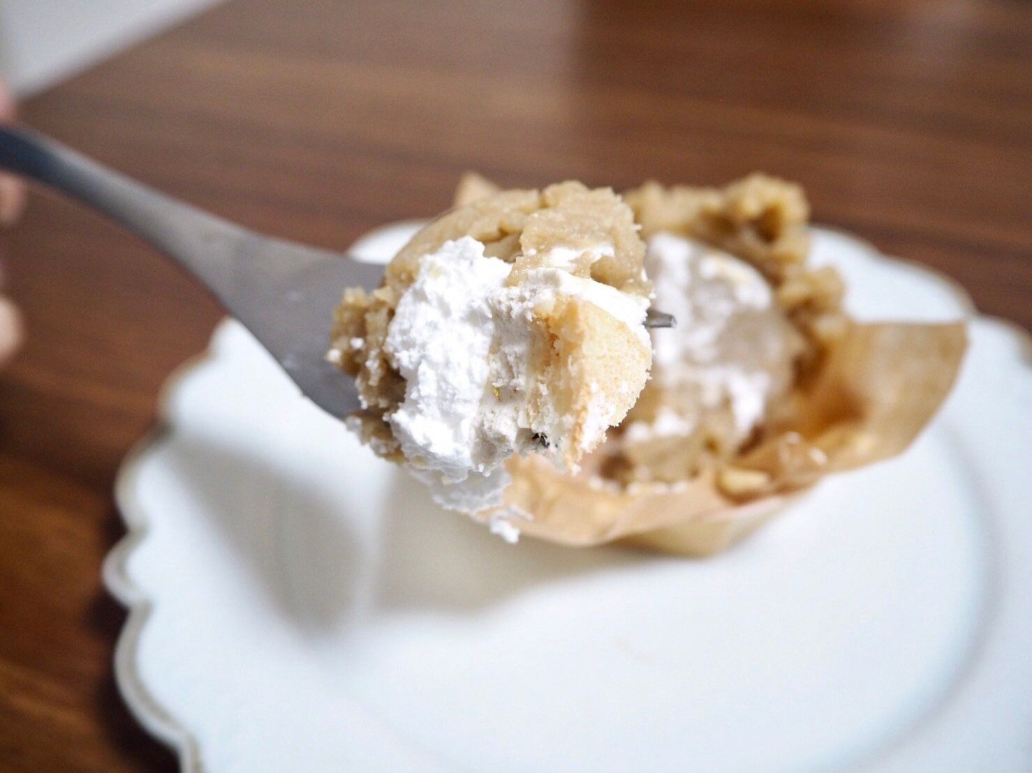 フォークで外側の部分を削ってみると中からたっぷりのホイップが登場。
