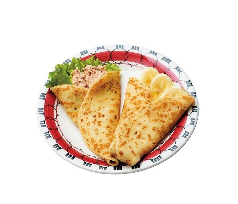 面倒なクレープ生地が、レンチンで一瞬!厚めのもっちり生地で、甘い系はもちろんツナマヨなど食事系の具材を巻いてもおいしい。