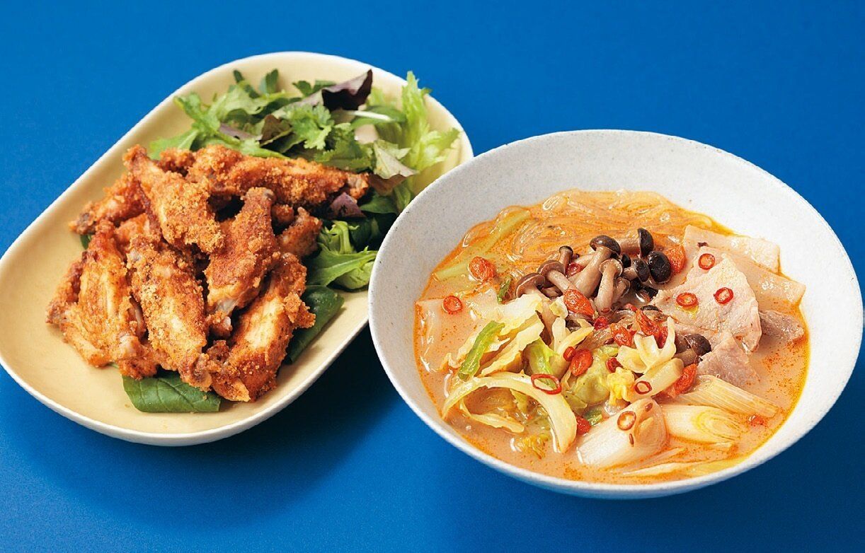 「火鍋はスープにしっかりコクがあり、絶妙なスパイシー感が最高。焼いた豚肉とたっぷり野菜、春雨を入れれば人気の麻辣湯風に!手羽からは粉が入った袋に生肉を入れて、レンジ加熱するだけ。手軽さとおいしさで激リピ中です」。