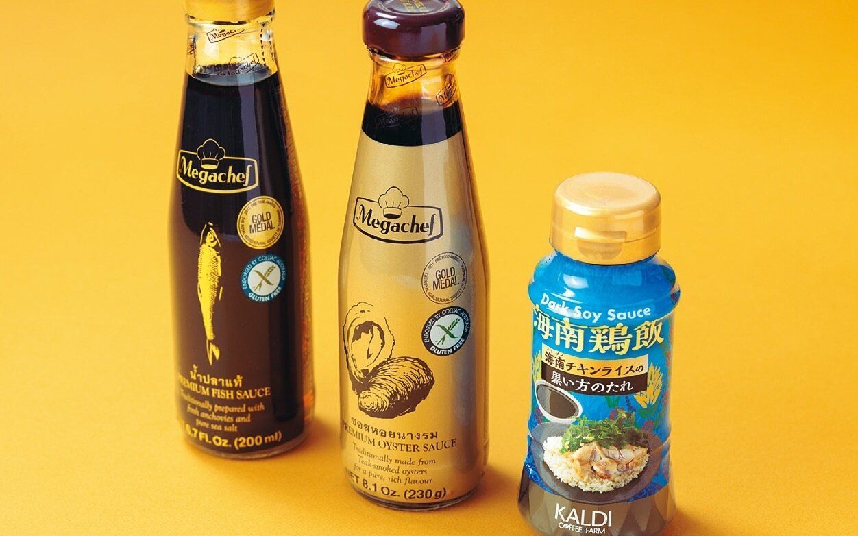 「タイ生まれのメガシェフは味が複雑で、1本で味が決まる!オイスターソースは焼きそばやゆでた青菜の味付けに、ナンプラーは炒めものに活躍。『黒い方のたれ』は蒸し鶏はもちろん、マヨと合わせれば絶品ディップに」。