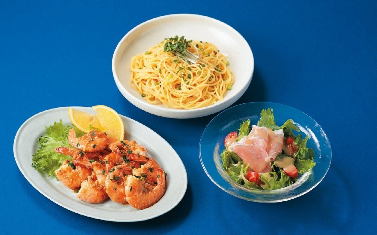 「えびと炒めるだけで、ハワイのガーリックシュリンプに。揚げたカジキでも絶品です。玉ねぎとにんにくの風味が絶妙なドレッシングは、野菜にも肉料理にも大活躍。あえるだけの味噌カルボは、手軽さも濃厚な味わいも最強です」。