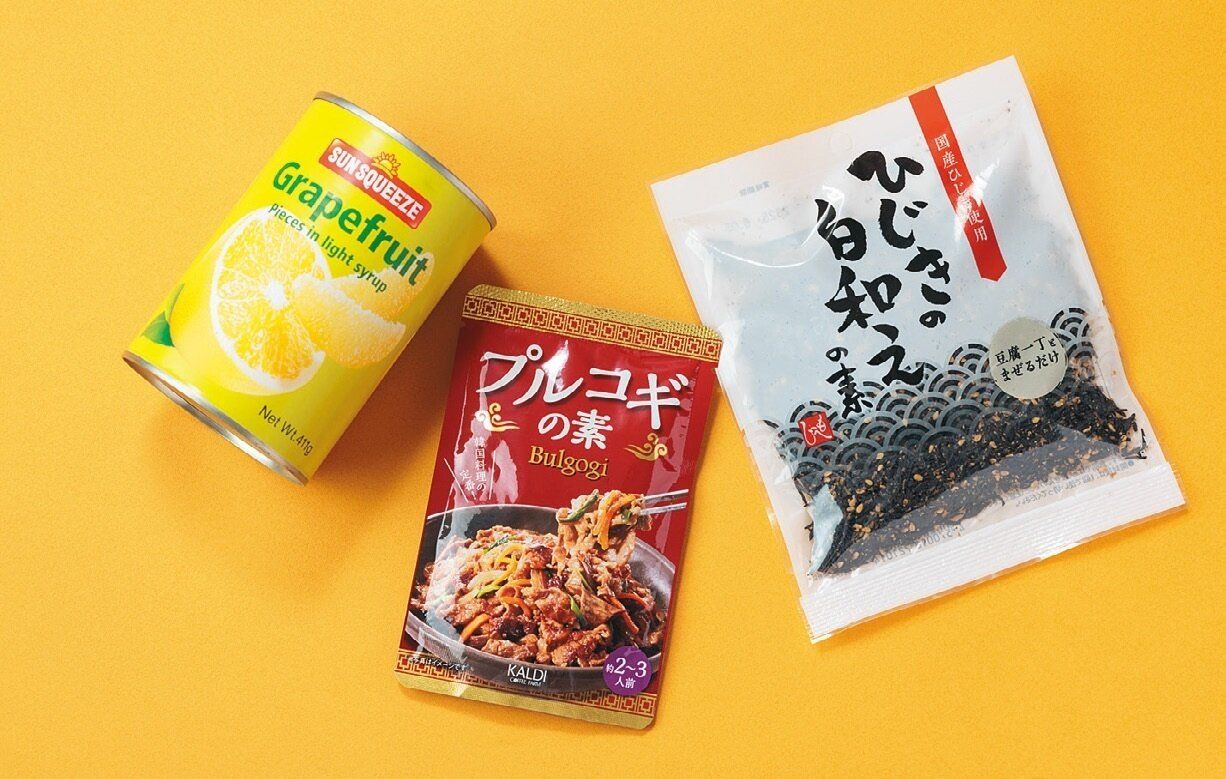 「牛肉と玉ねぎ、にんじんなどにプルコギの素を絡めて冷凍すれば、忙しい日に大活躍。豆腐と混ぜるだけの白和えは、ゆで野菜を加えたり、ひき肉を入れてハンバーグにするのも◎。カット不要のグレープフルーツ缶も便利です」。
