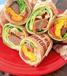 生地をレンジ加熱して(しっかり火を通すこと)、ブリトーにするのもおすすめ。野菜や業スーのスモークチキンなど、たっぷり具材を入れて巻くとお店風に♪
