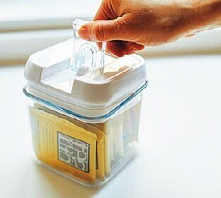 密閉できて、片手でレバーを上げ下げするだけで簡単開閉。「重ねられるので、省スペース。見た目も素敵で、お茶セットを入れています。フタと茶こしが一体になったガラスポットも愛用」