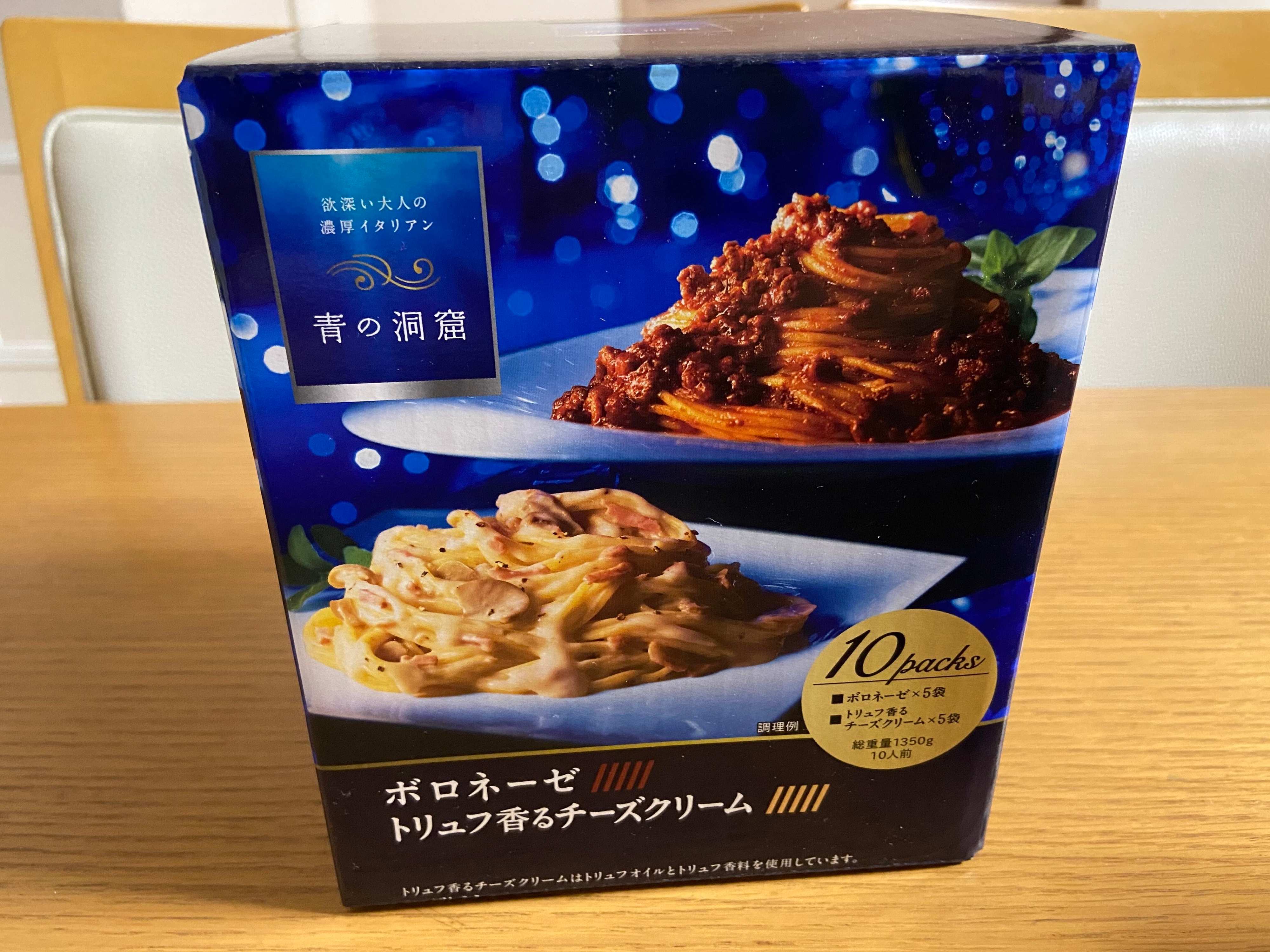 青の洞窟パスタソースはやっぱりおいしい!コストコのアソートパックはスーパーで買うよりもコスパがよいので、簡単に、でもおいしいパスタが食べたい!というときにストックあると重宝しますよ!