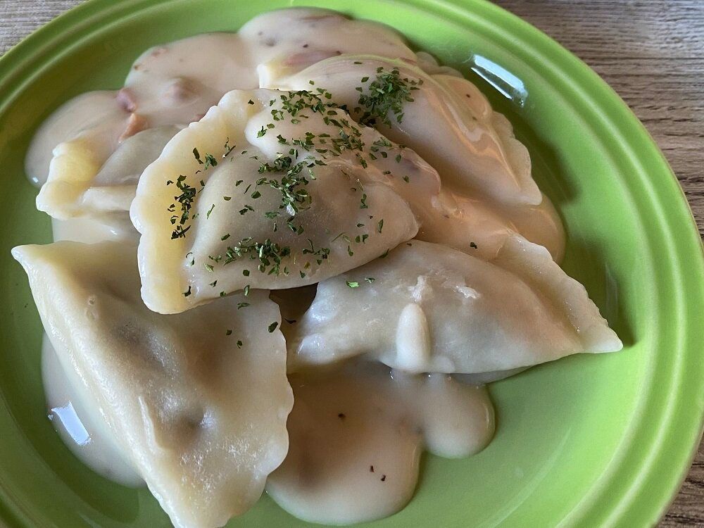 トリュフ香るチーズクリームは、コストコのピエロギ(日本でいう餃子のようなポーランドの家庭料理)をゆでて上からかけました。