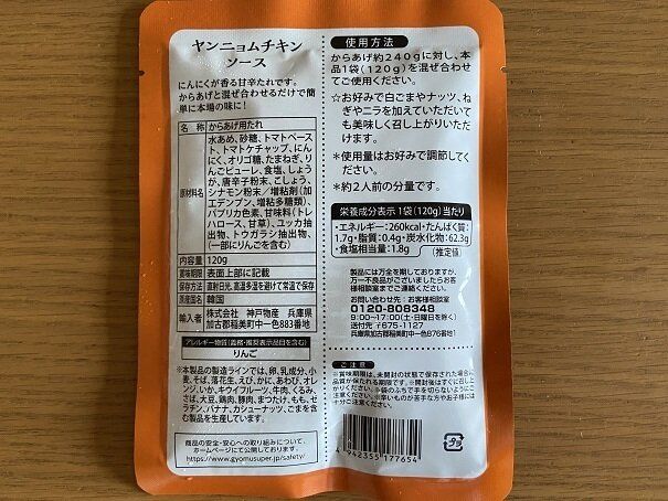 こちらは業務スーパーの調味料コーナーで販売されている「ヤンニョムチキンソース」(購入時:117円)です。