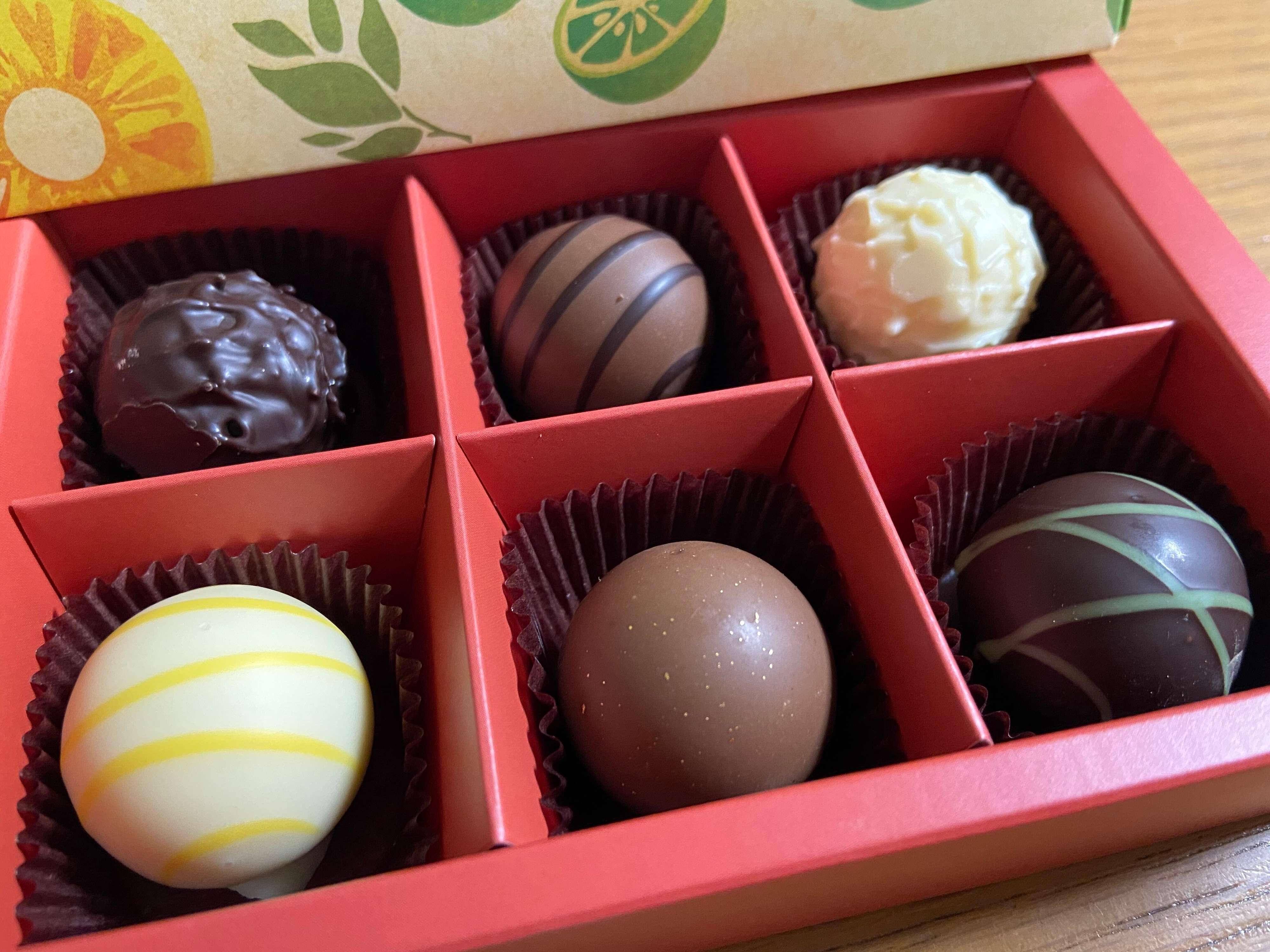 ホワイトチョコレートやミルクチョコレート、スイートチョコレートなどコーティングされているチョコレートもそれぞれのジャムや果汁入りのガナッシュに合わせて組み合わせが違い、一粒一粒ゆっくり堪能したい、味わい深いおいしさ!