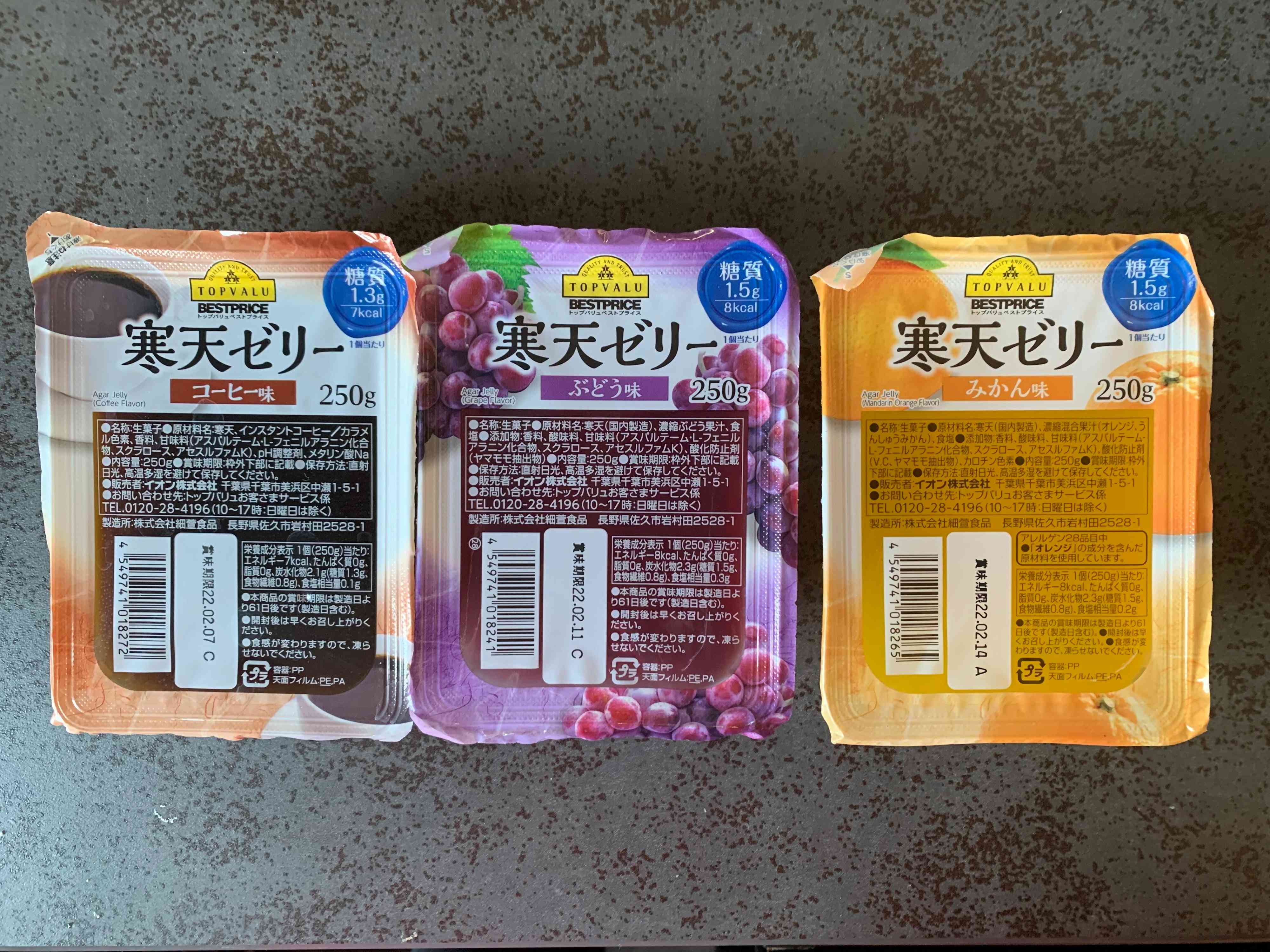 他のメーカーからも低糖質の寒天ゼリーは発売されていますが、トップバリュの物は、味と食感がピカイチ!
