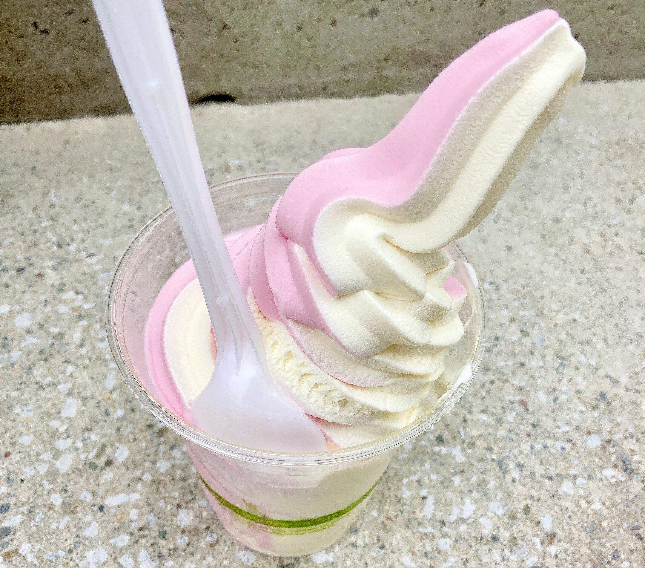 カップより高く盛り付けられたソフトクリームは、ずっしり重く260円でこのボリュームはコストコならでは!ミックスなので両方の味を、口に入れると思ったよりもいちごの酸味がしっかりだけど北海道ソフトのクリーミーさと交わり、いちごミルクのような味に。