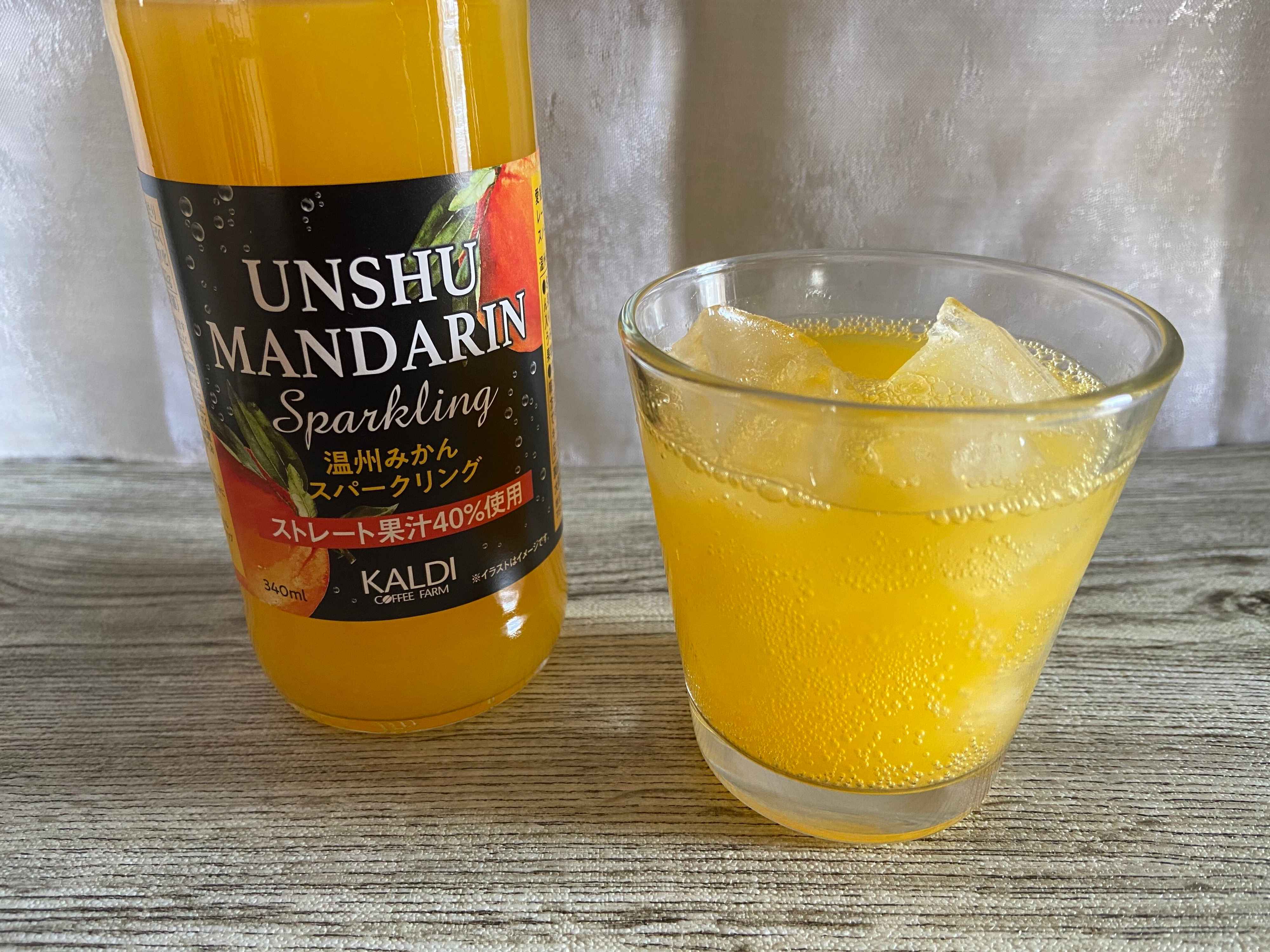 カルディの「温州みかんスパークリング」(購入時:302円)がとってもおいしくておすすめ。