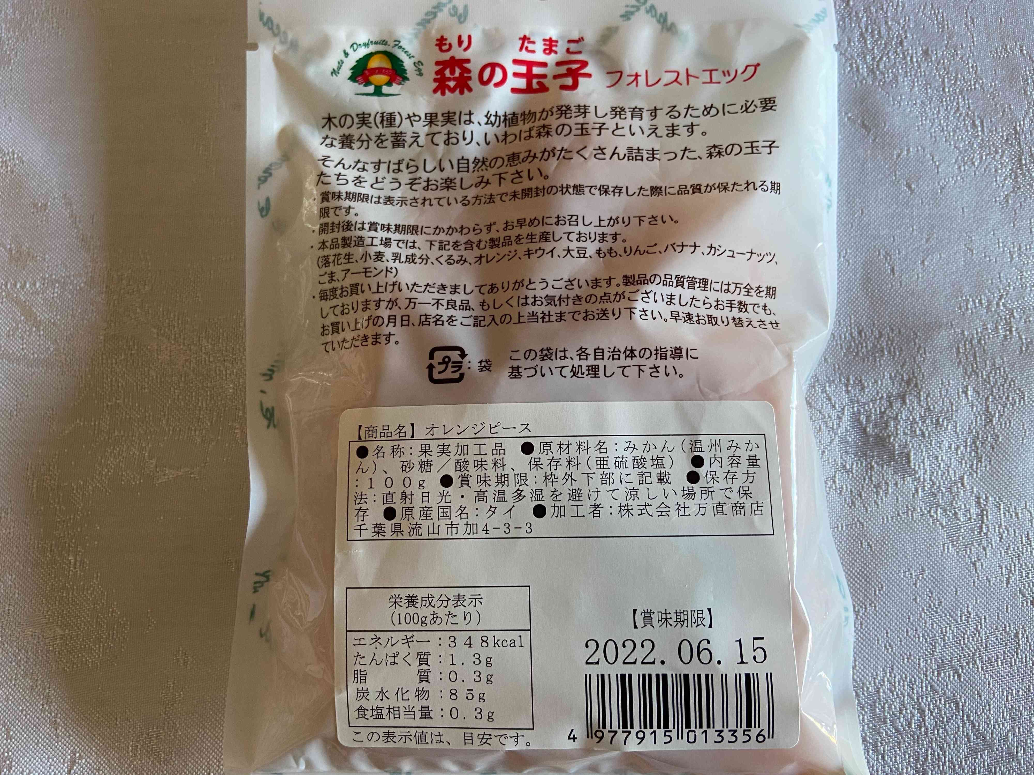 こちらが成城石井で見つけたドライフルーツ「オレンジピース」(購入時:389円)です。