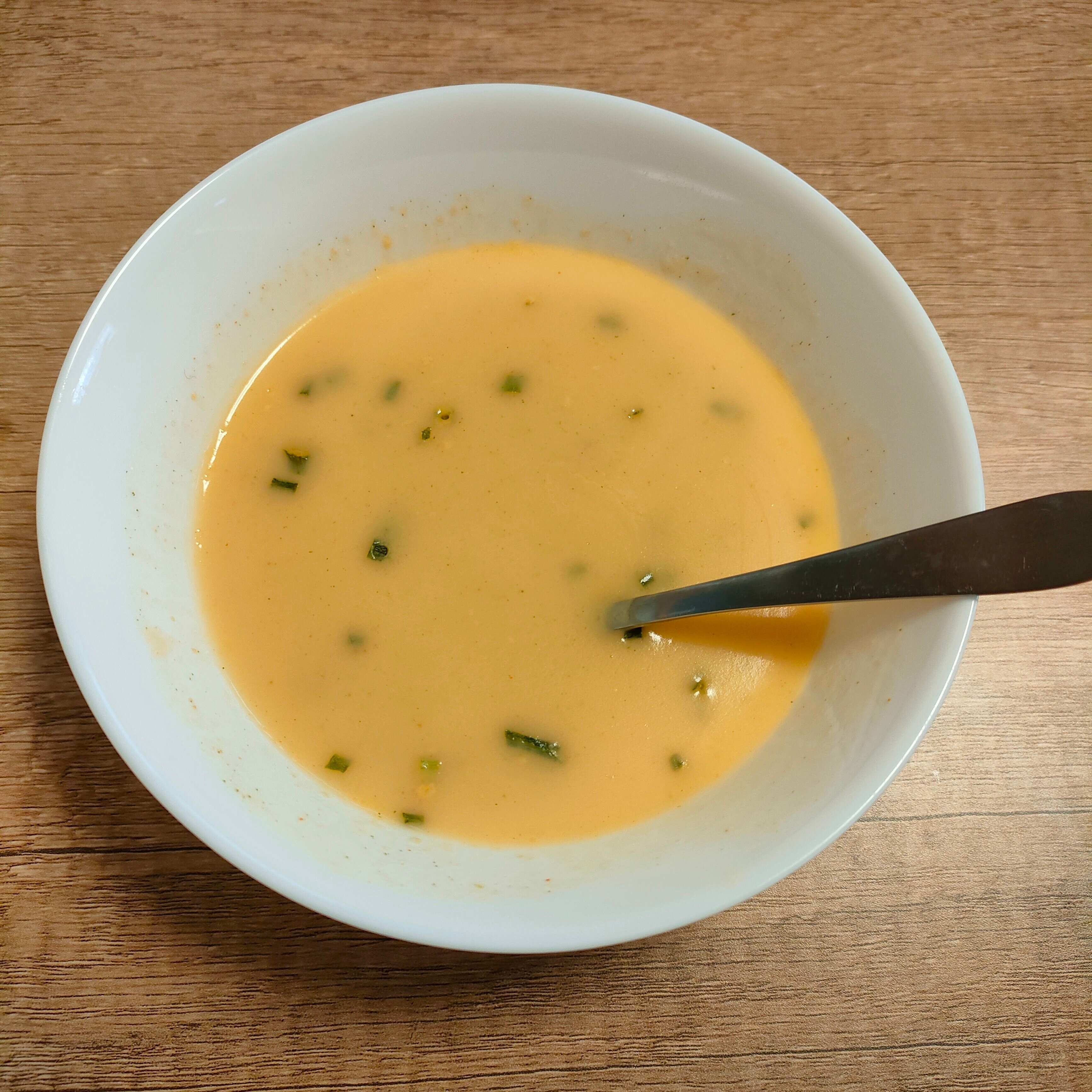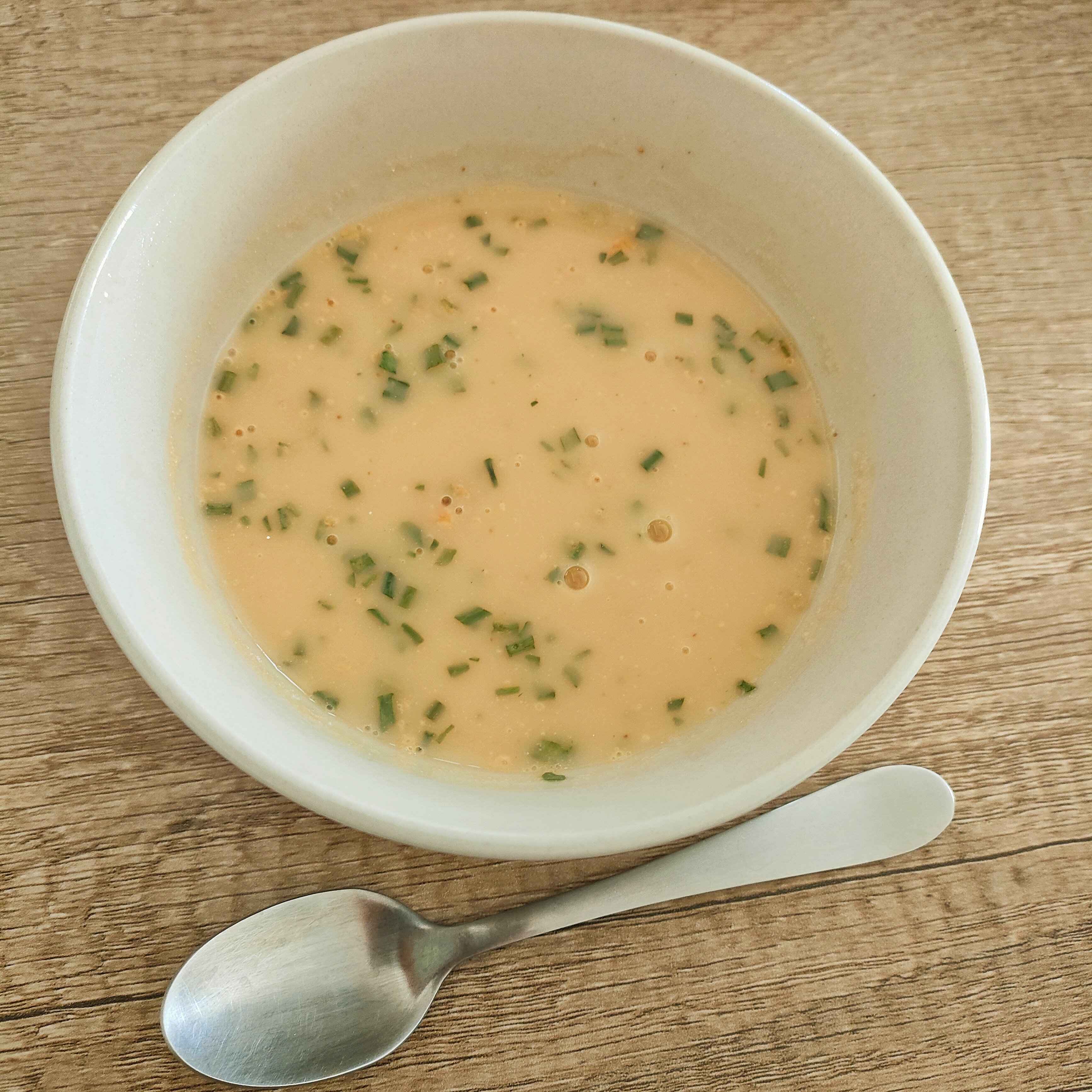 実際にお湯を入れてかき混ぜること、10秒。パパっとスープができあがりました!なんて早い!いそがしい朝には助かります。