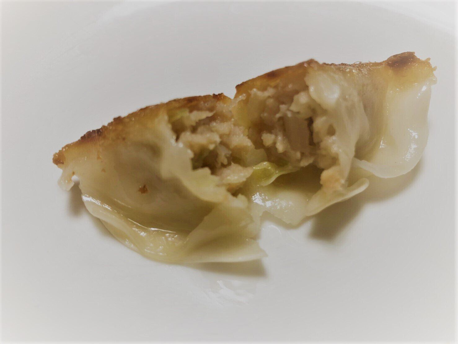 商品名通りで野菜がたっぷり入ってとってもおいしい。割ってみると肉汁もじゅわ~と出て、具沢山な餃子になっています。