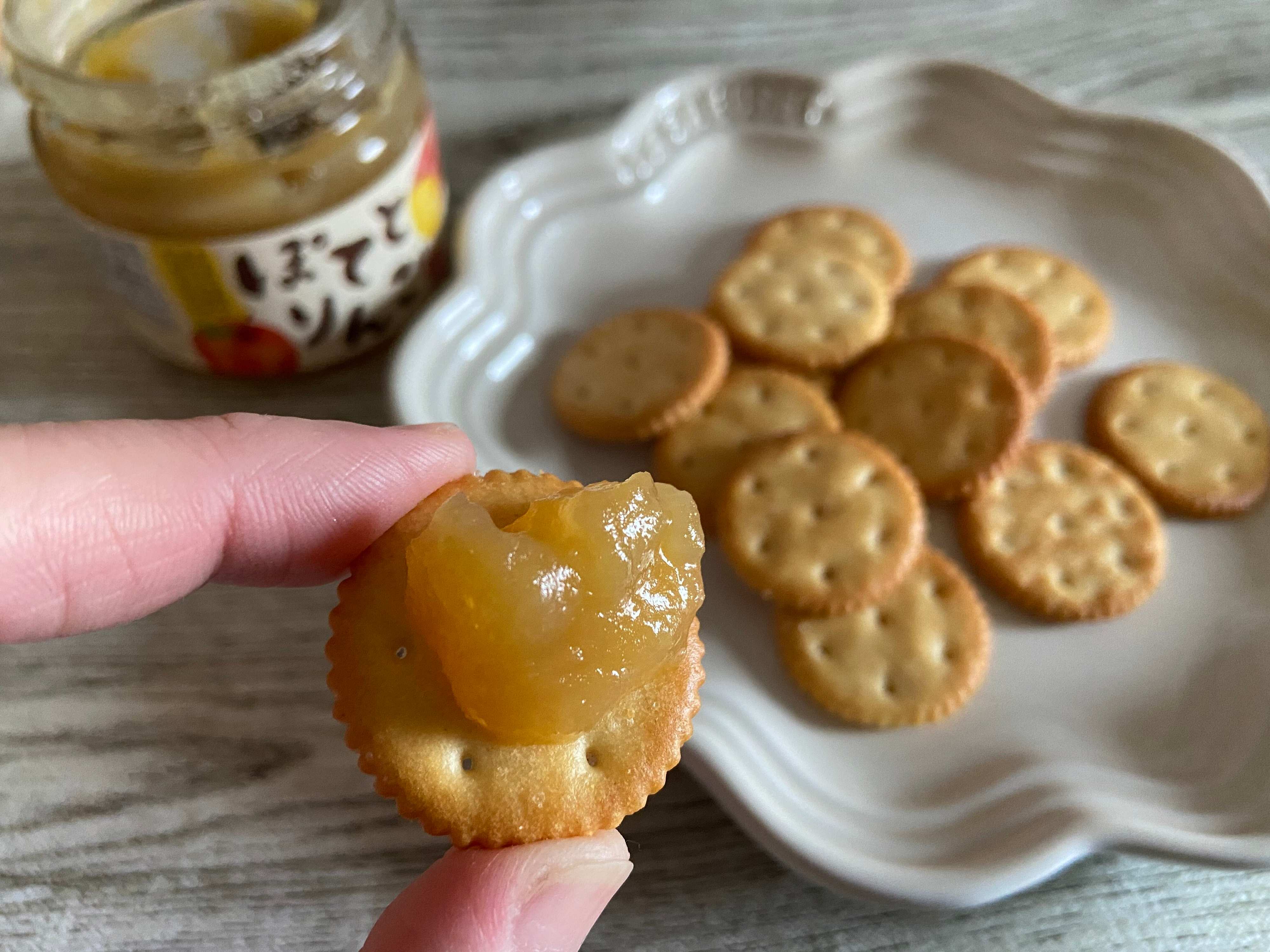 ほんのり塩気の効いたサクサククラッカーとの相性も抜群。ついつい手が止まらなくなってしまうおいしさです。
