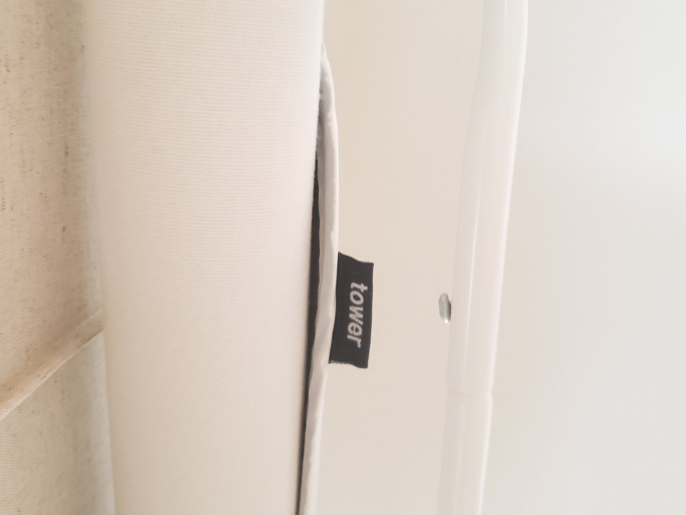 towerにはマグネットでくっつく商品が豊富。皆さんマグネットでいろんなものを浮かせていていいな…と思っていました。しかし、我が家のバスルームはタイルなのでくっつかないのです。浮かせたくても浮かせられない!そんな時にこちらのタオル掛け上ラックを見つけました。