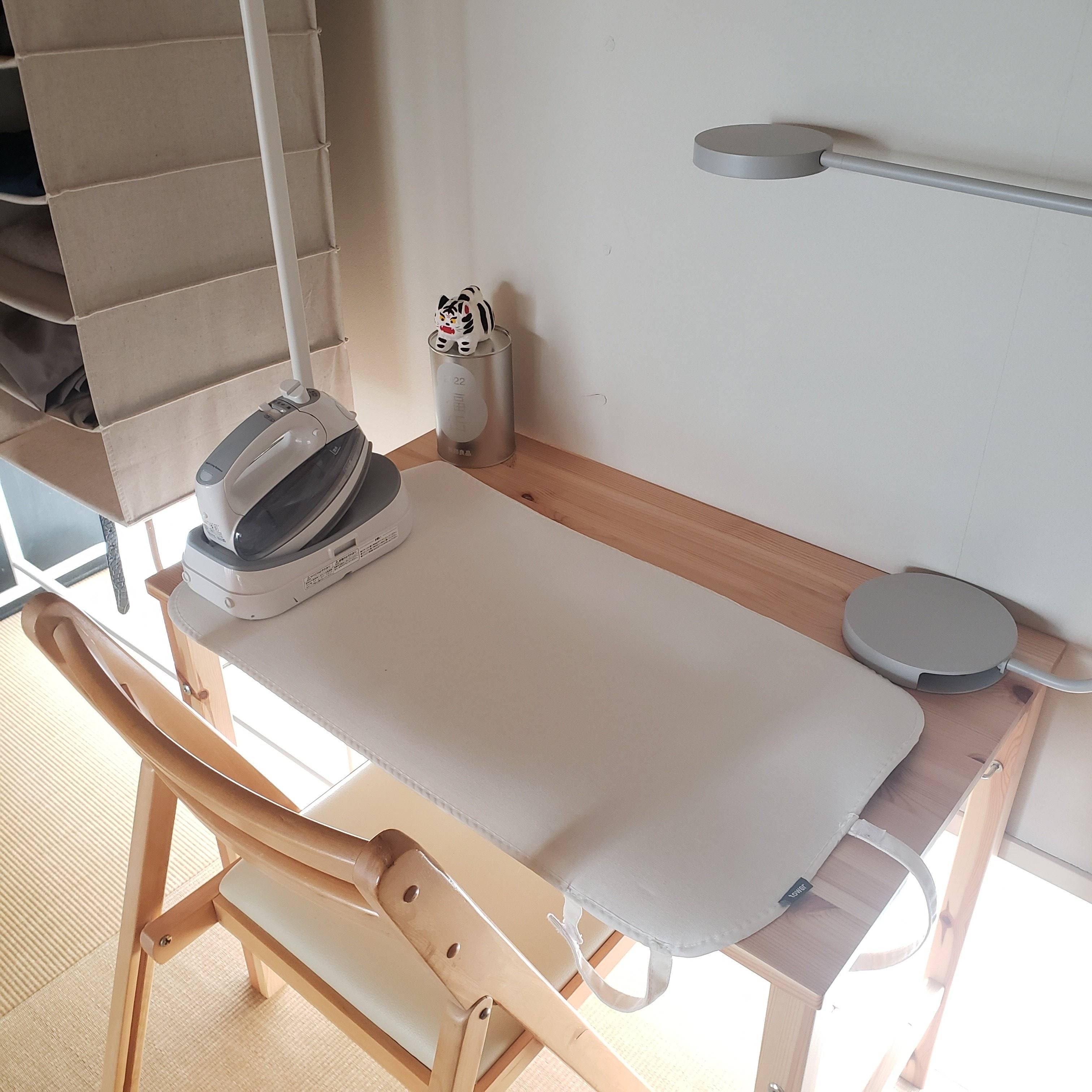 かつてはアイロン台を使っていましたが、買い替えの際にこちらのくるくるアイロンマットを購入。我が家はアイロンをかけるものがあまりないので、収納時のことを考えコンパクトになるアイロンマットを選びました。