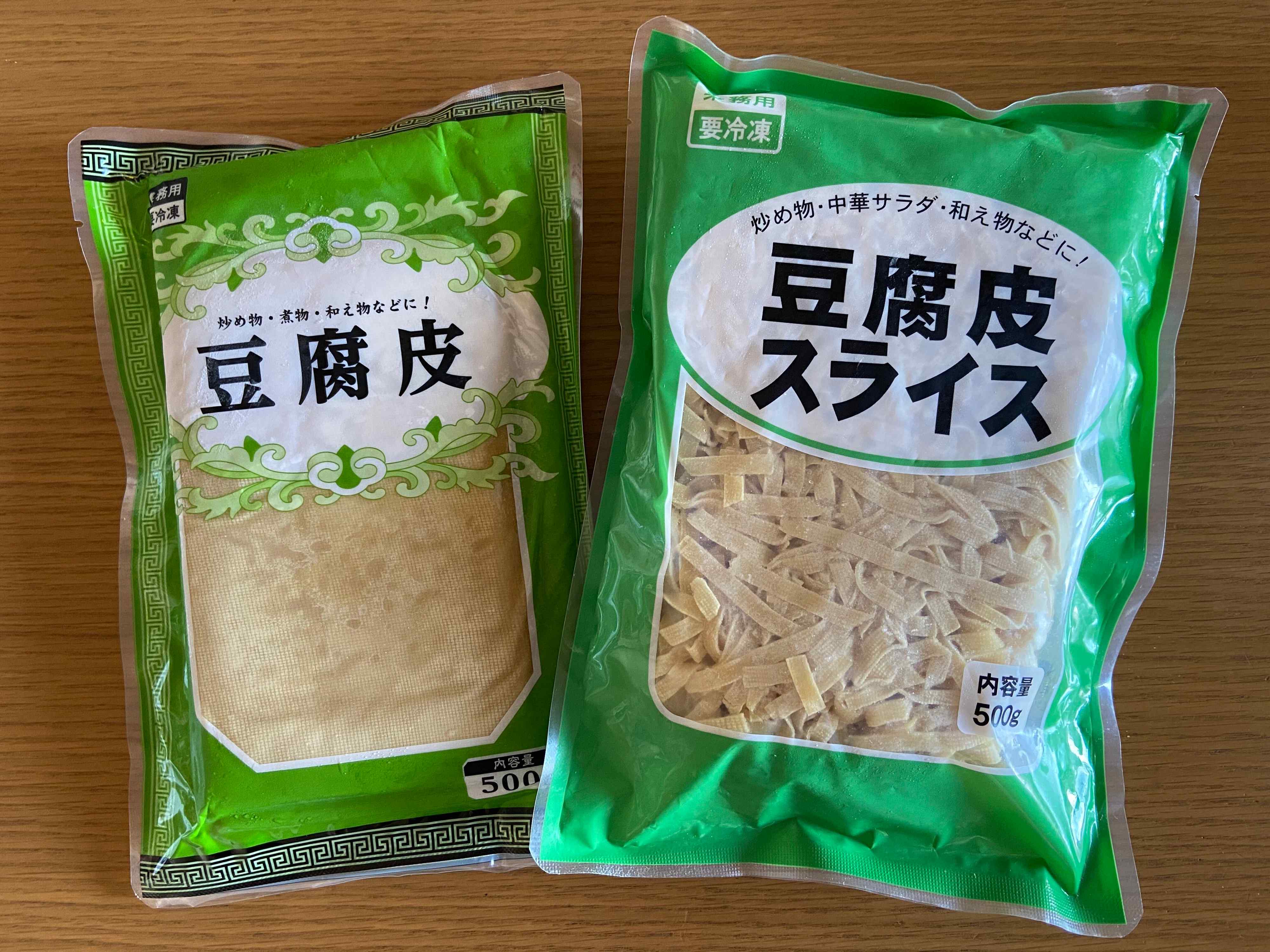 カットされていない「豆腐皮」(購入時:300円)と、細くスライスされている「豆腐皮スライス」(購入時:311円)の2種類のラインアップがあります。