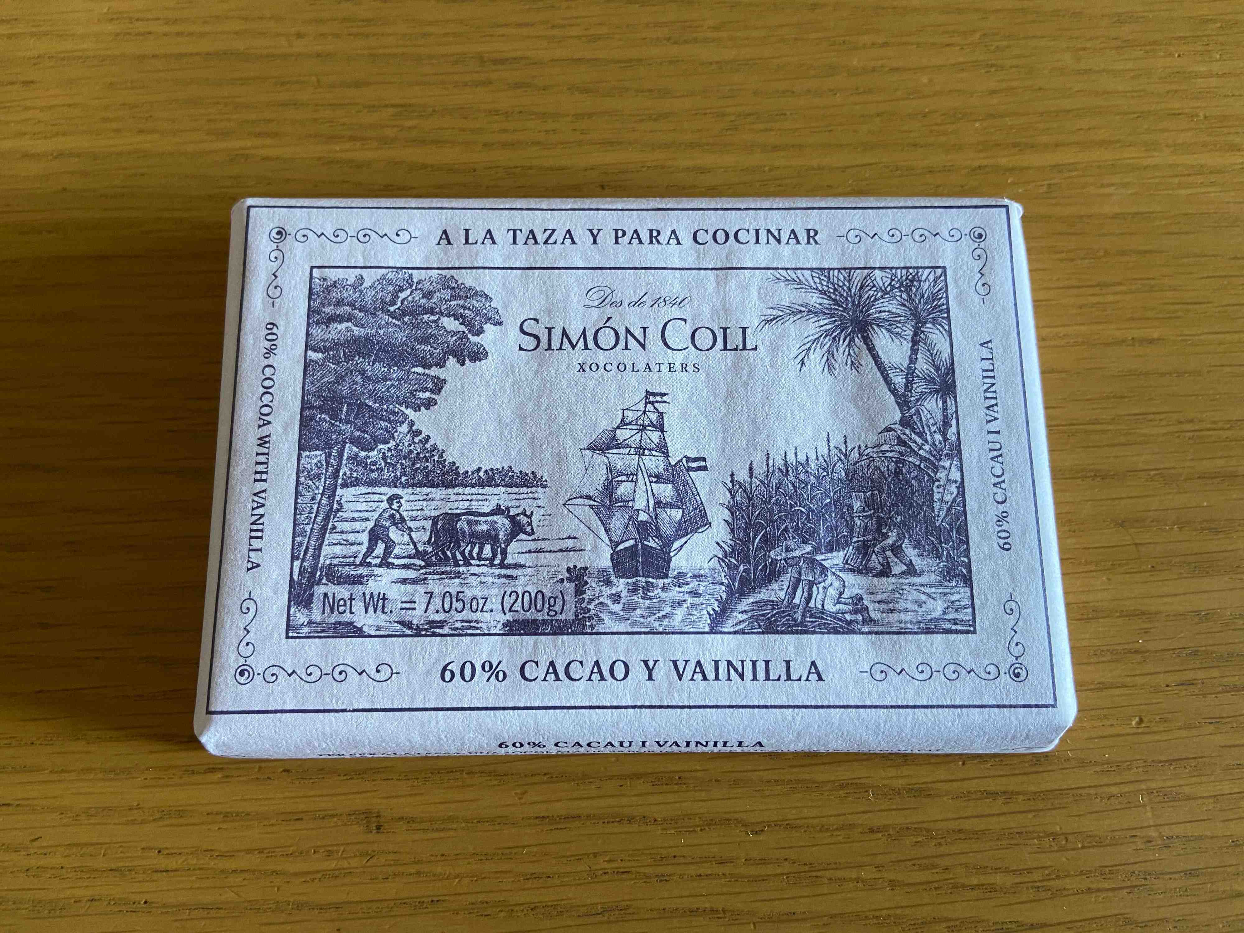 こちらはスペイン産のチョコレート「シモンコール ホットチョコレート(カカオ60%バニラ)」(購入時:540円)です。