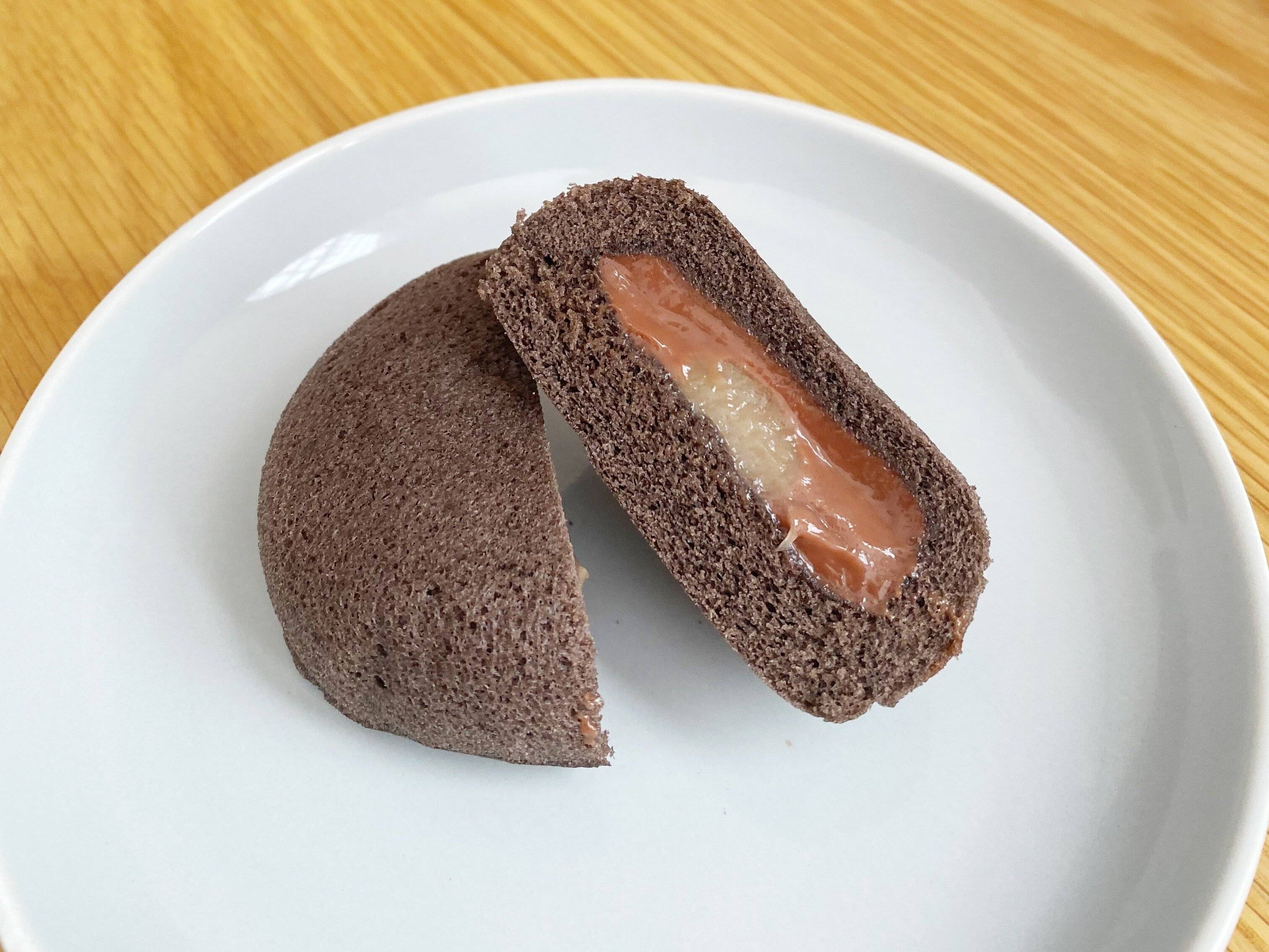 ココア味のスポンジ生地でチョコカスタードとバナナペーストを包んだスイーツです。