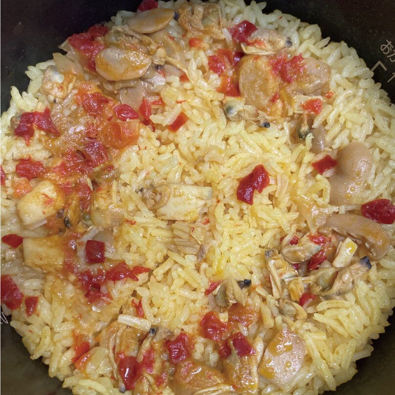 炊飯ボタンひとつでエスニックなご飯の出来上がり。