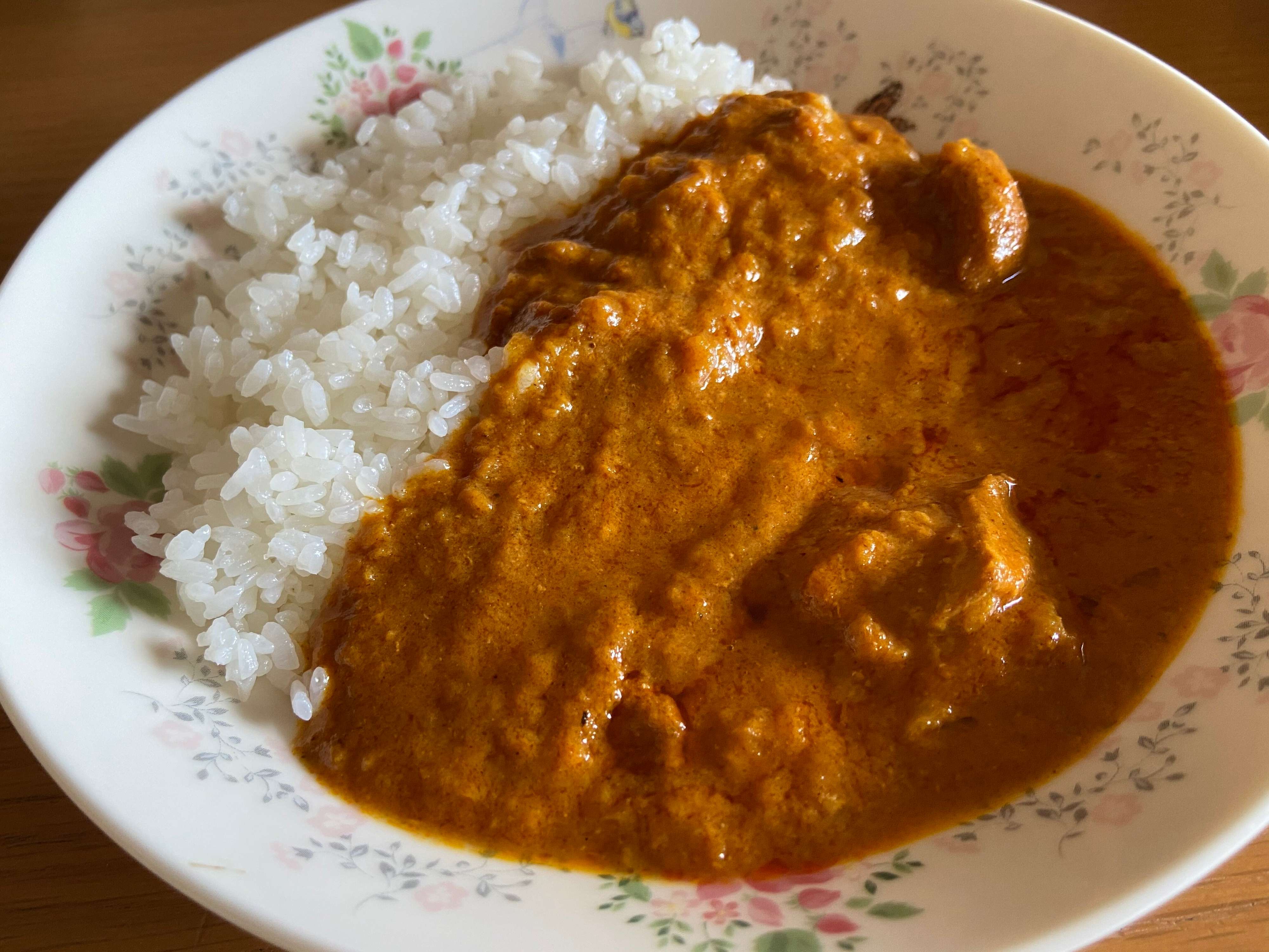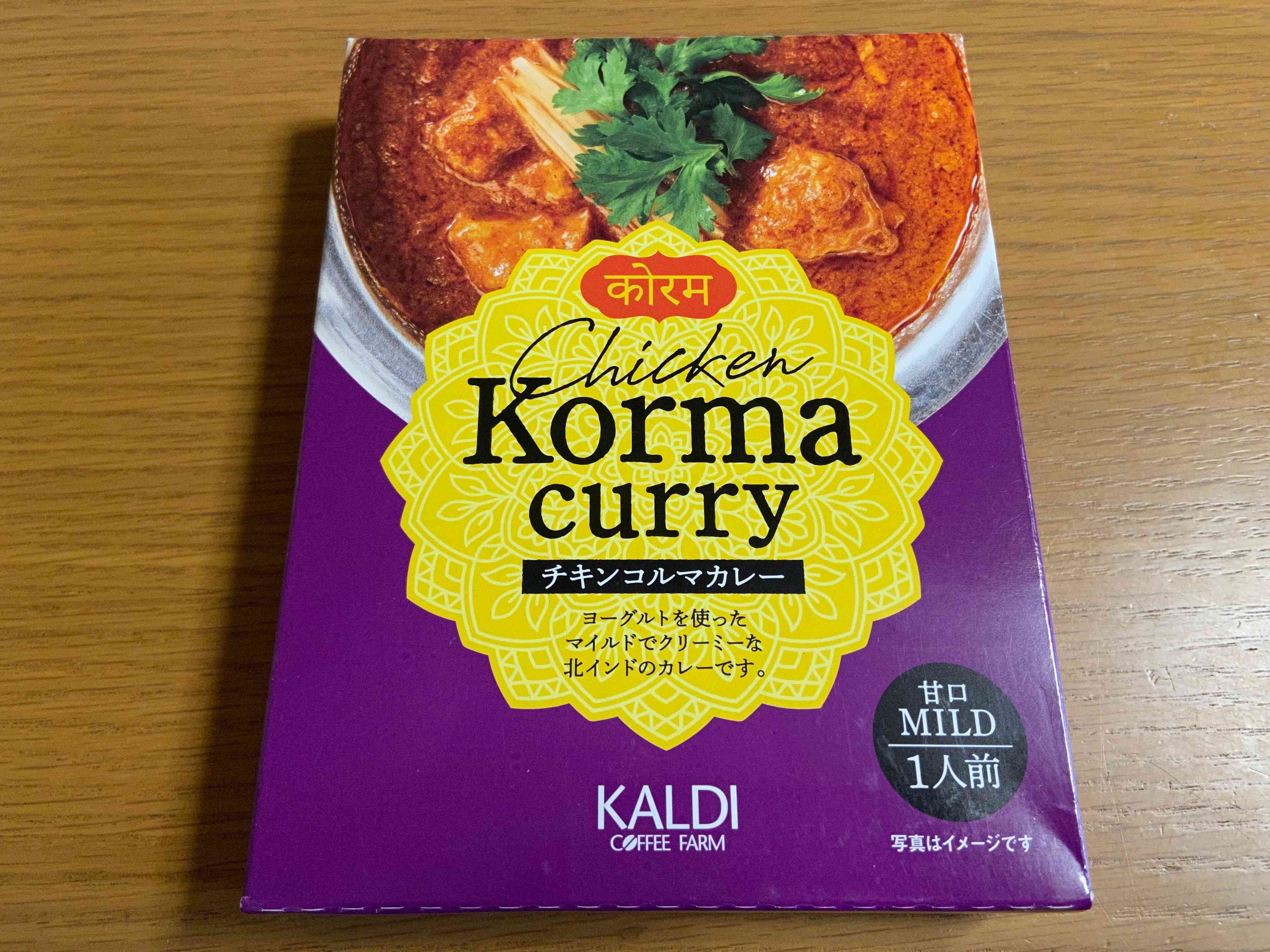 まずは「チキンコルマカレー」(購入時:334円)。じっくり炒めた野菜にヨーグルトやトマトを加えた辛さ控えめマイルドな北インドのカレーです。