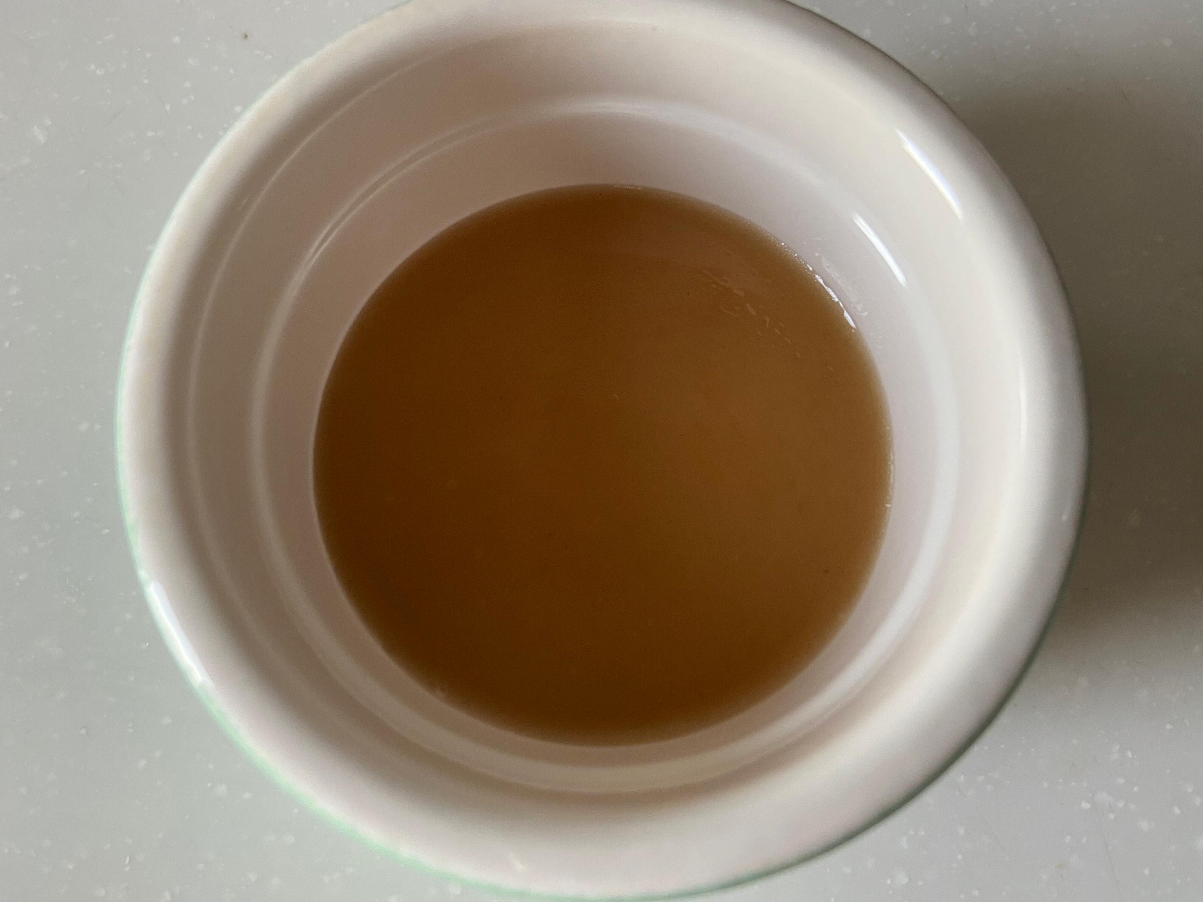 お皿に少し出してみると一般的なフレンチドレッシングよりも少し濃い目の色で、サラサラではなくしっかりとろみがあります。